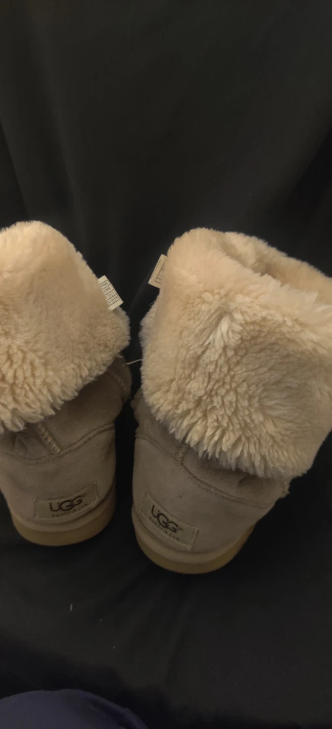 These UGG Australia boots are made with genuine sheepskin and leather. They feature a rubber sole. Perfect for keeping your feet warm and cozy!. Boots are pre-owned and shows some signs of wear