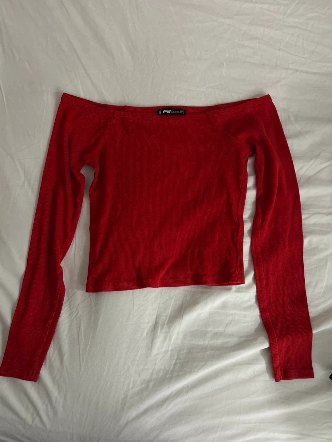 FB Sister Red Off-the-Shoulder Long Sleeve Top XS