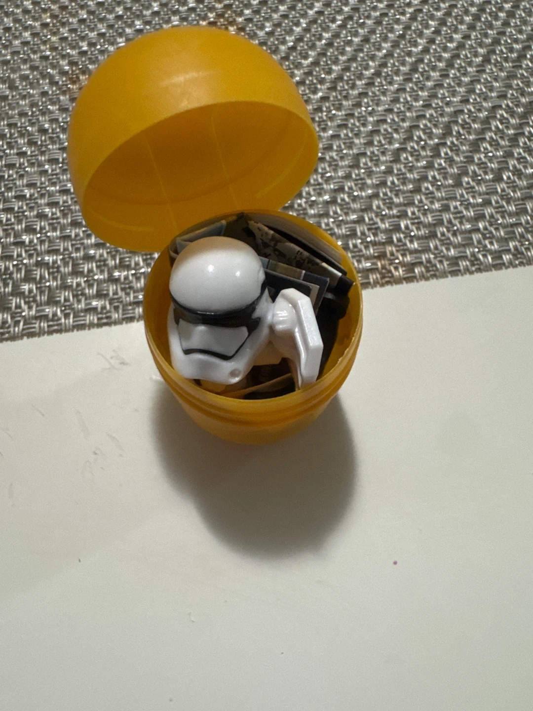 1.50$ each!!! Selling this three kinder egg toys, from star wars collection, have them unpacked in eggs. This is a 2-pack of Star Wars mini figures. Includes a Stormtrooper and Rey. They stand on display bases.