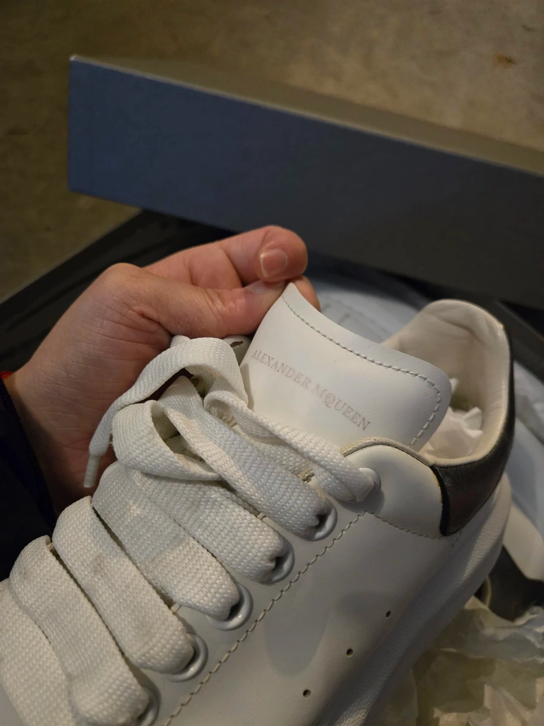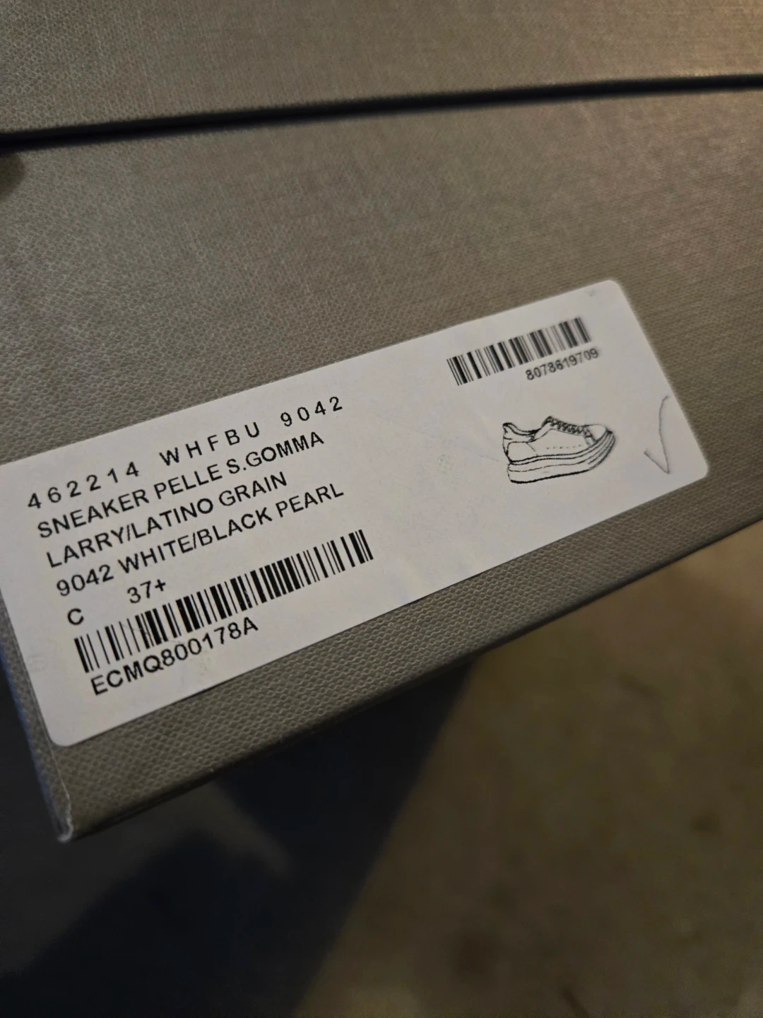 Alexander McQueen Larry sneakers in white and black pearl. Calfskin leather. Includes original box. Size 37+.