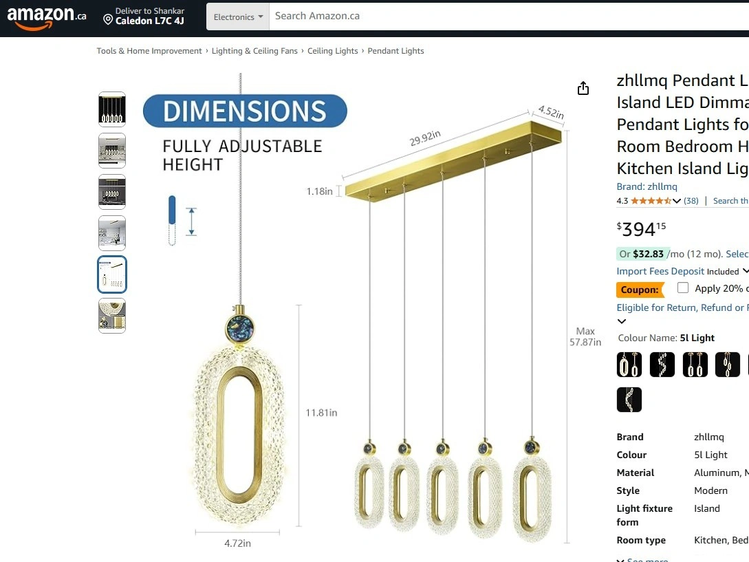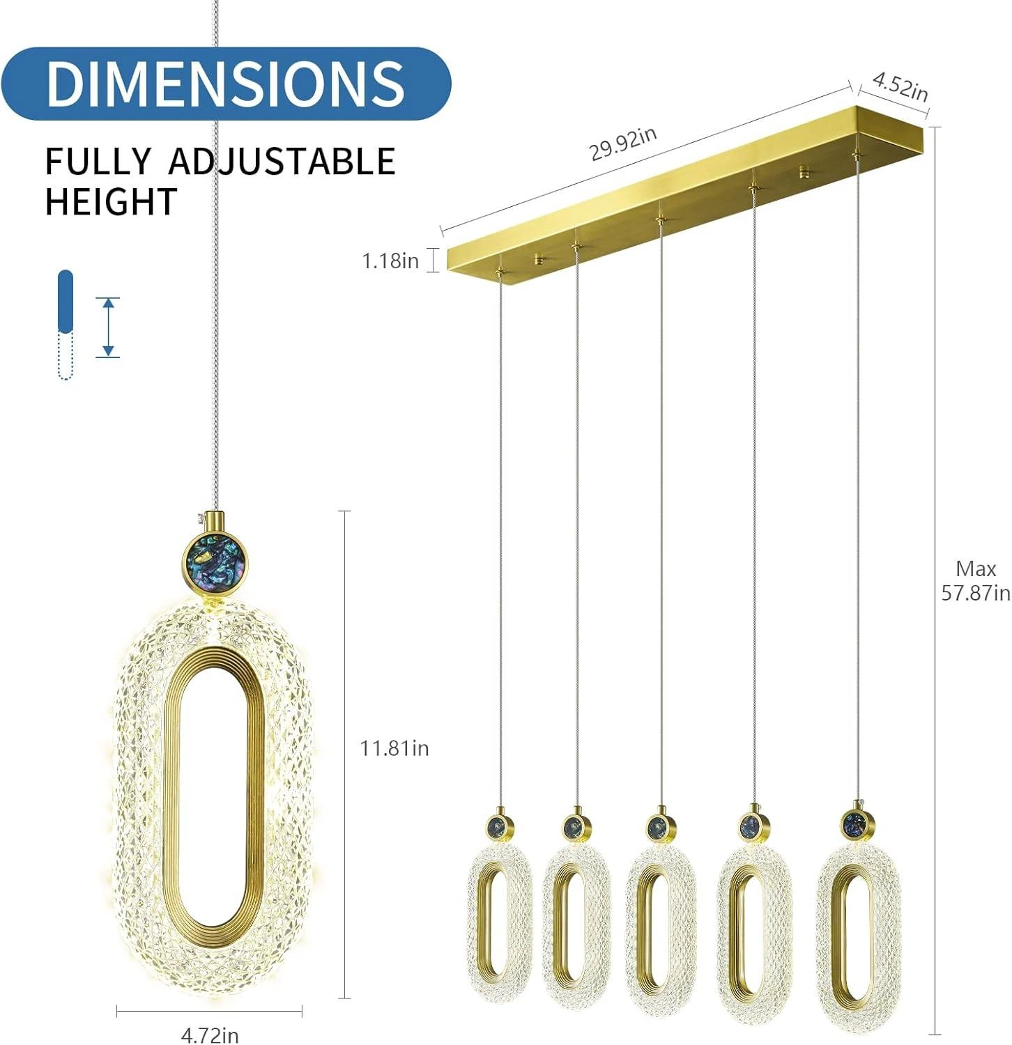 This is a beautiful zhllmq LED dimming island pendant light. It features a fully adjustable height and is perfect for a kitchen island or dining room. The dimensions are: