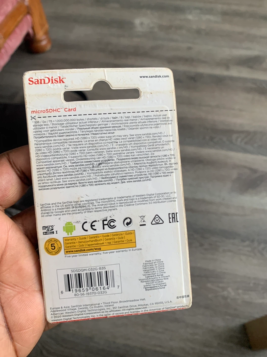 SanDisk micro SDHC card with 32GB capacity. This dependable memory card is great for your favourite photos, videos, and games. Easily transfer files between your camera, tablet, and computer.