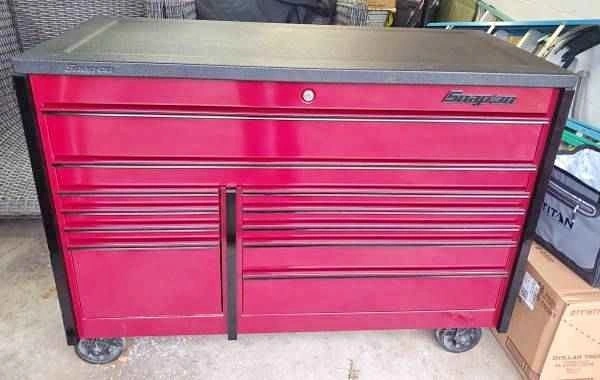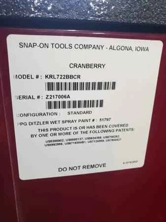 Selling a Snap-on KRL722BBCR roll cab in cranberry red with black trim β perfect for professional shops, garages, or serious DIYers.