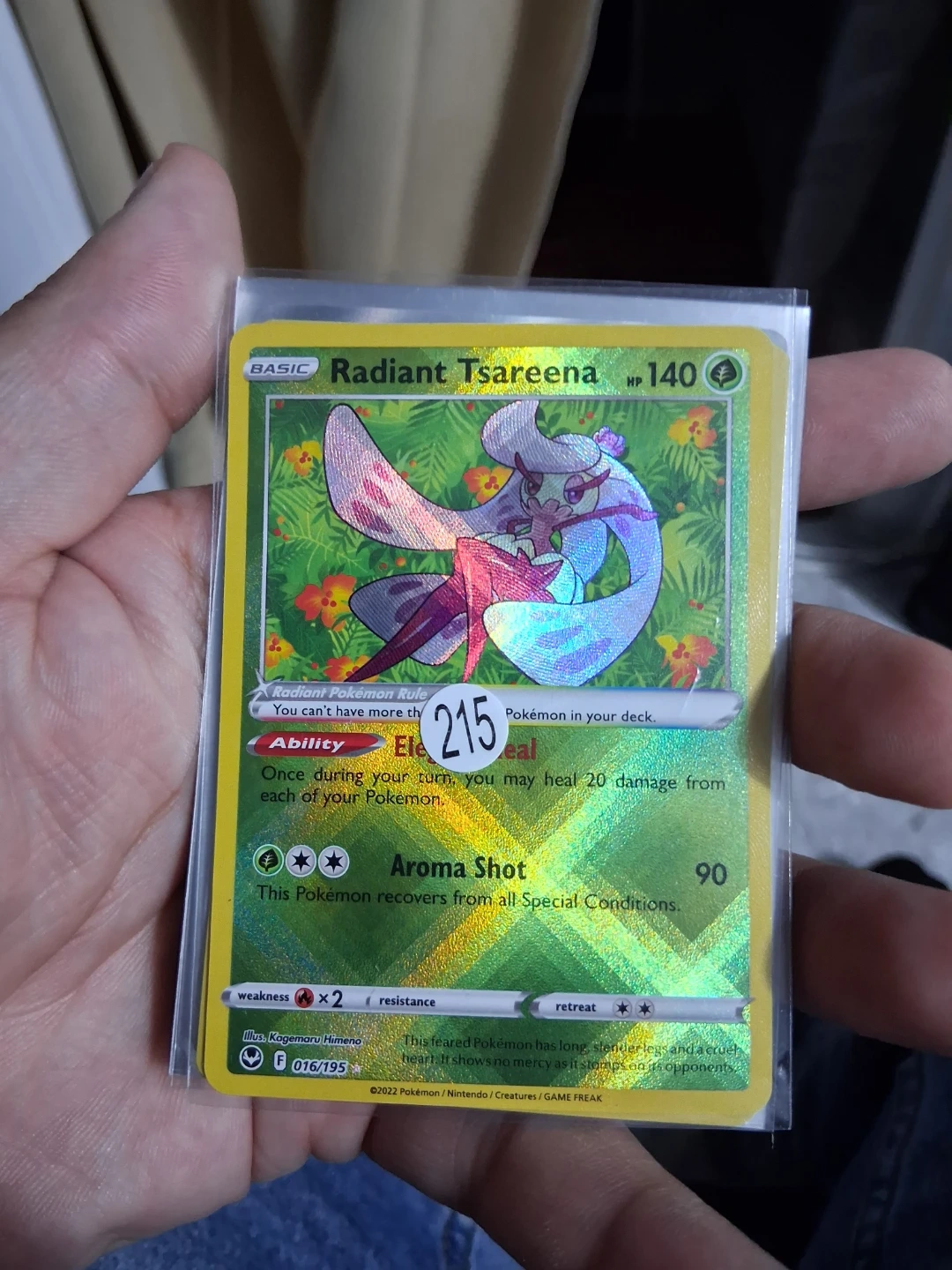 Bundle of various Pokemon trading cards including Hatterene, Xatu, Radiant Hawlucha, Radiant Tsareena, and Cramorant. These cards are great for collectors or players of the Pokemon TCG. Condition varies by card.