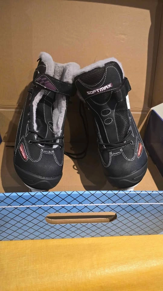 60Softmax S-957 insulated ice skates for women. The skates are designed for recreational skaters and feature a soft boot for comfort, Thinsulate insulation, and a synthetic fur collar for warmth. For recreational skaters, beginners to intermediate. Soft boot construction, Thinsulate insulation, synthetic fur lining, and a stainless steel blade.