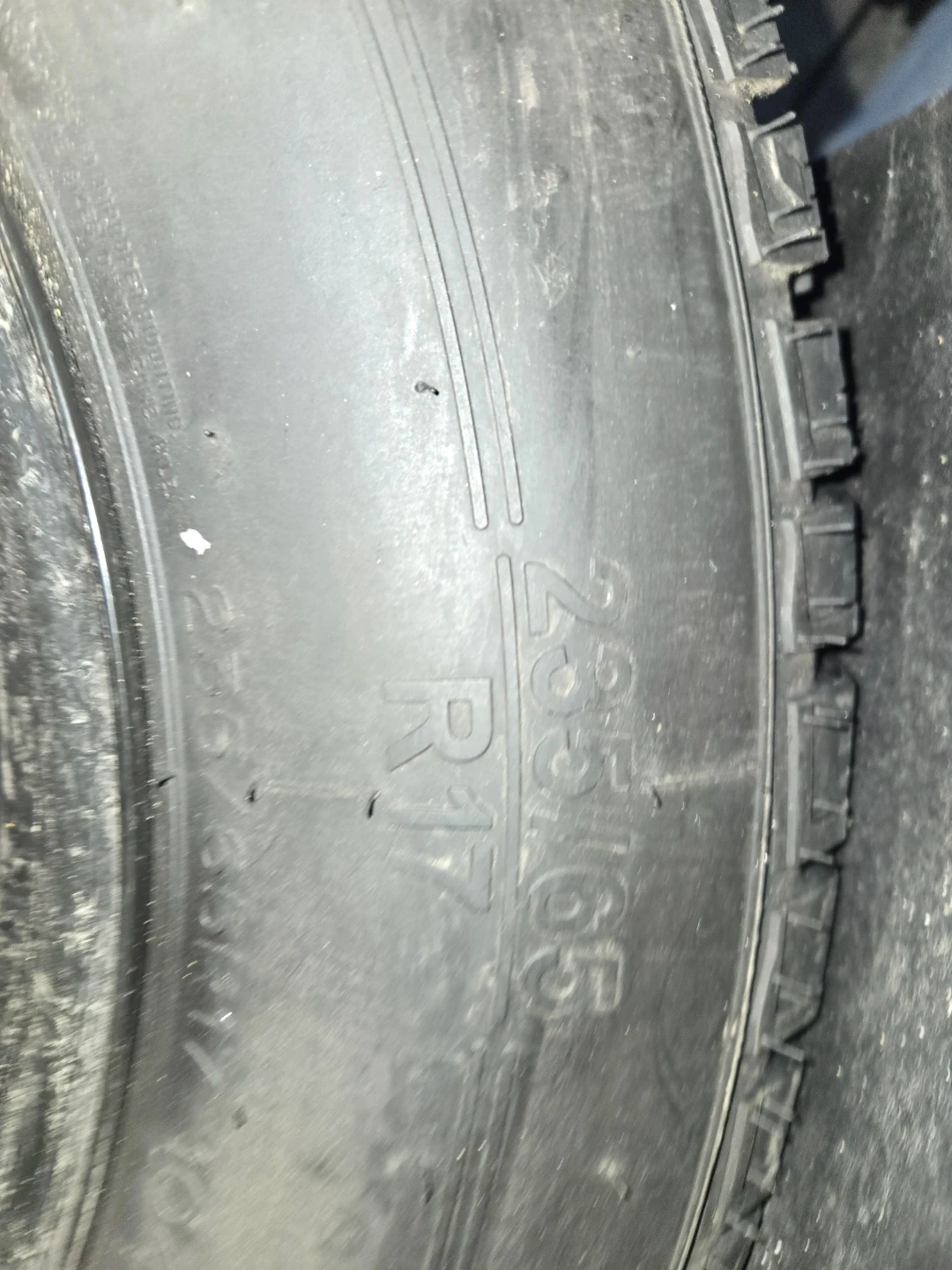 Size 235/65 R17 UniRoyal Tiger Paw. Can provide purchase receipt upon Request