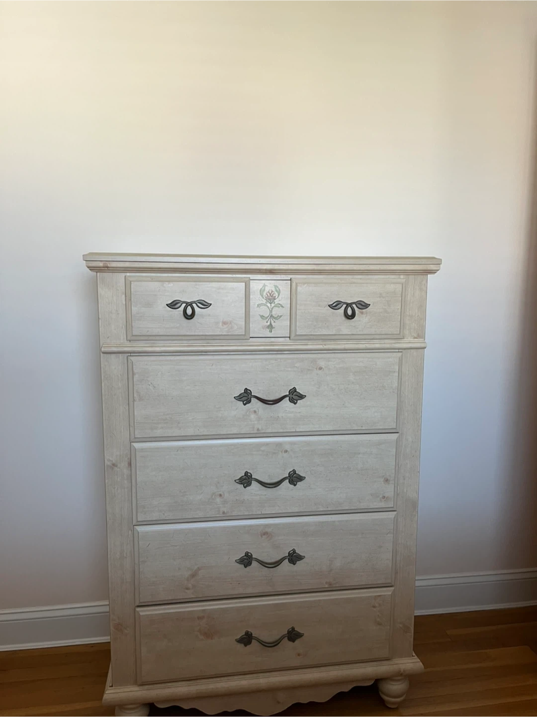Selling a lovely wooden dresser with six drawers! It's a great piece for adding storage and a touch of classic style to any bedroom or living space. The dresser features decorative drawer pulls and a neutral finish that complements various decor styles. This dresser is in good condition and ready for a new home!