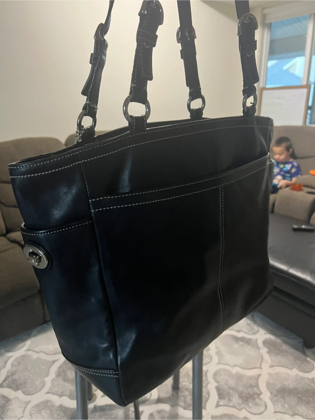 Selling a Coach black leather tote bag. It's in great shape and perfect for everyday use. The bag features classic Coach styling and is made from durable leather. It has plenty of room for all your essentials! 100% authentic brought it for over 400