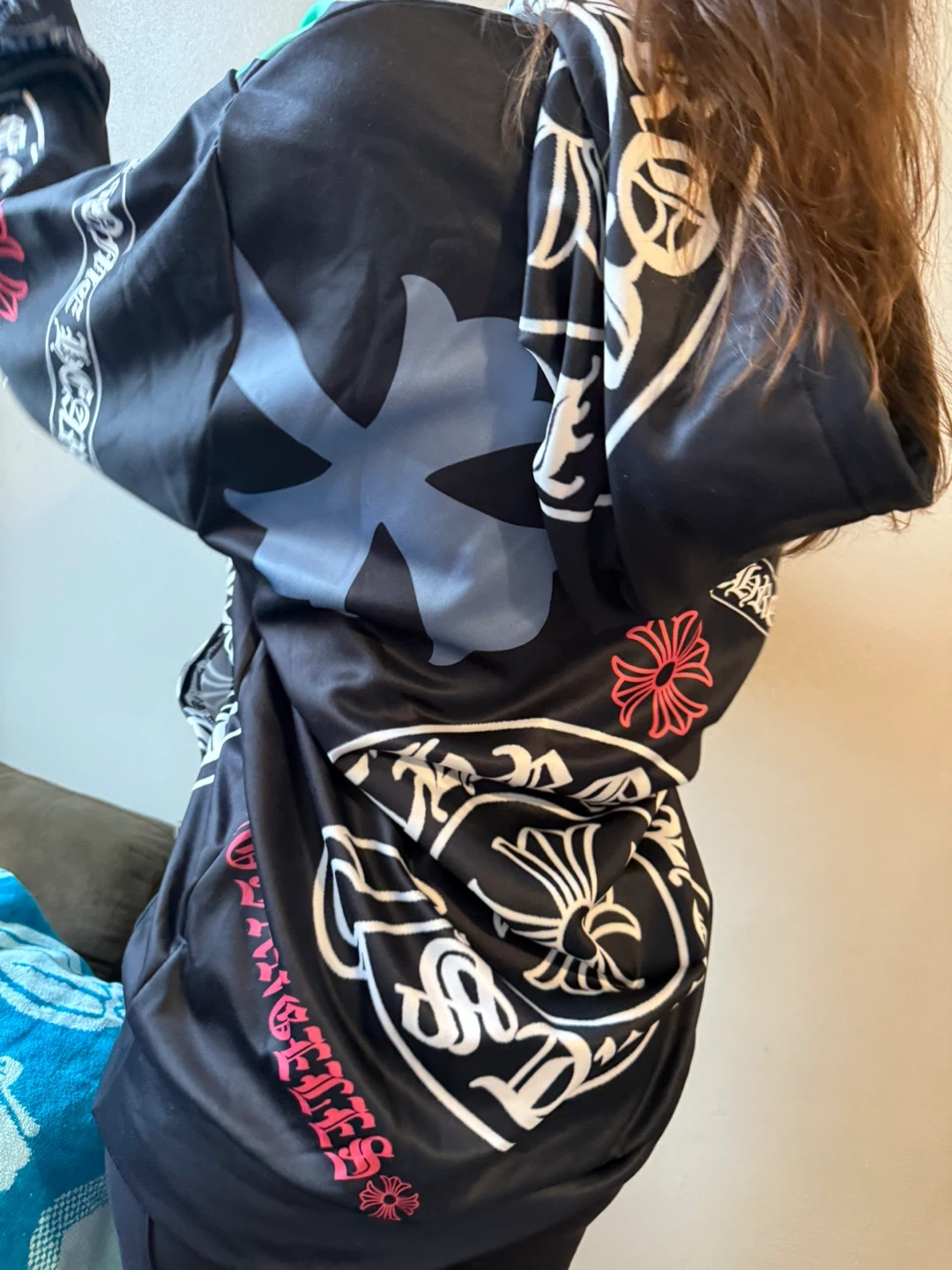 10Selling a black Chrome Hearts hoodie. It features a unique design with logos and patterns. Perfect for adding a stylish touch to your wardrobe!