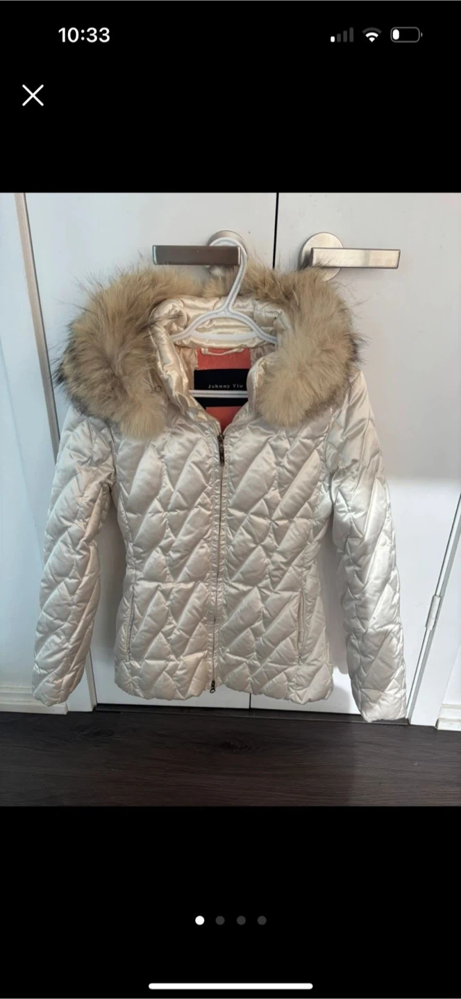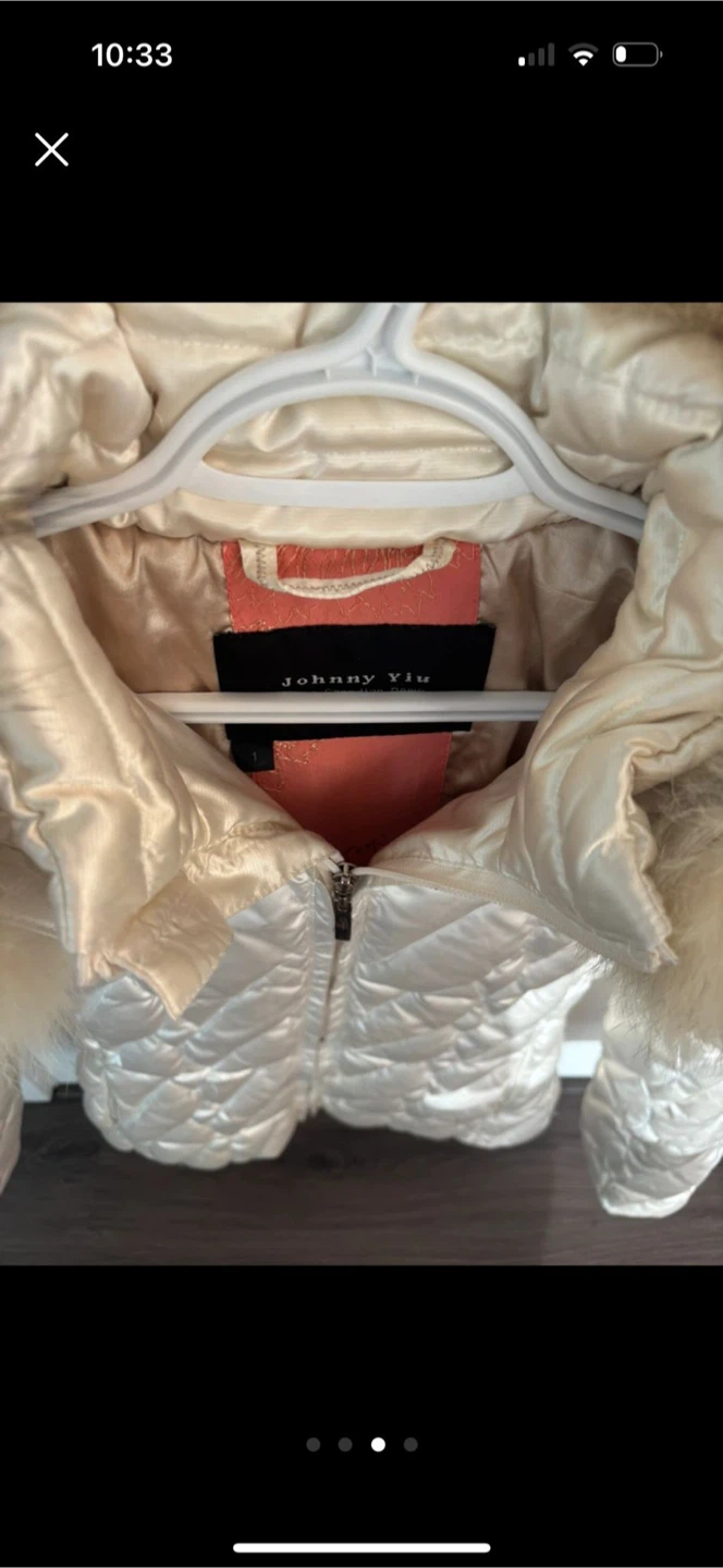 Selling a stylish and beautifully designed Johnny Yiu puffer jacket! It features a quilted design silk all in and out of jacket , also thick real-fur trim on hood. Perfect for staying warm and fashionable during the colder months!! Great condition, worn a couple times!