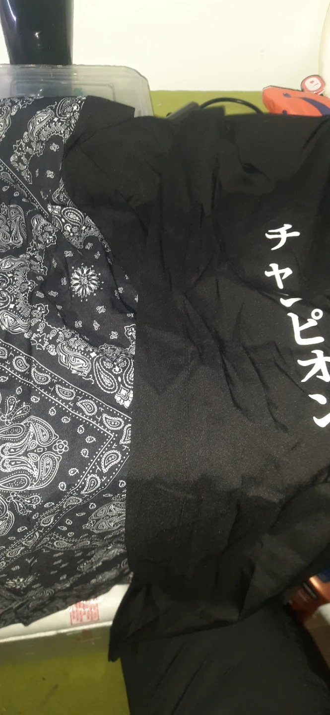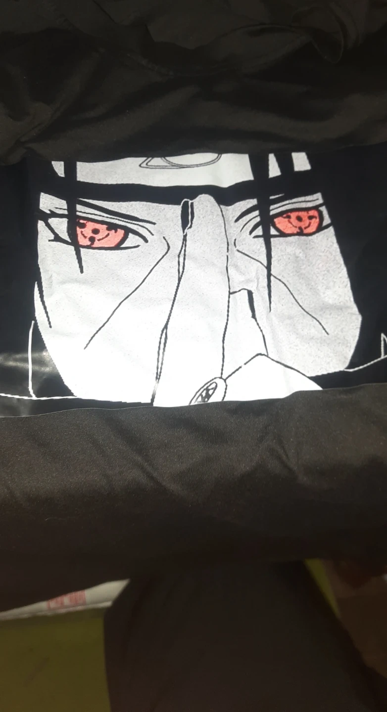 Selling a black t-shirt with an anime graphic. It features Itachi Uchiha from Naruto on the front. And a kimono top, both are unused collection