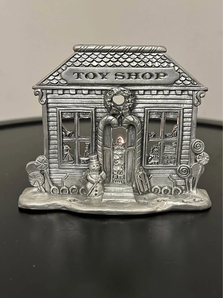 Vintage Pewter Toy Shop Tealight Holder – Christmas Decor 3” tal