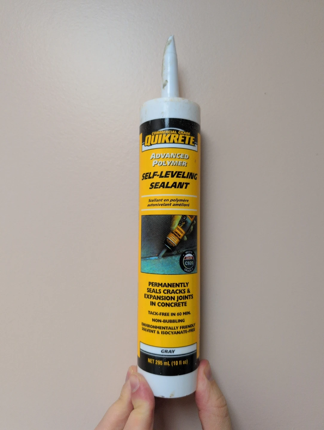 Selling a tube of QUIKRETE Advanced Polymer Self-Leveling Sealant. It's a commercial-grade sealant that permanently seals cracks and expansion joints in concrete. It's tack-free in 60 minutes, non-bubbling, and environmentally friendly, as it's solvent and isocyanate-free. The colour is gray, and it contains 295 mL (10 fl oz).
