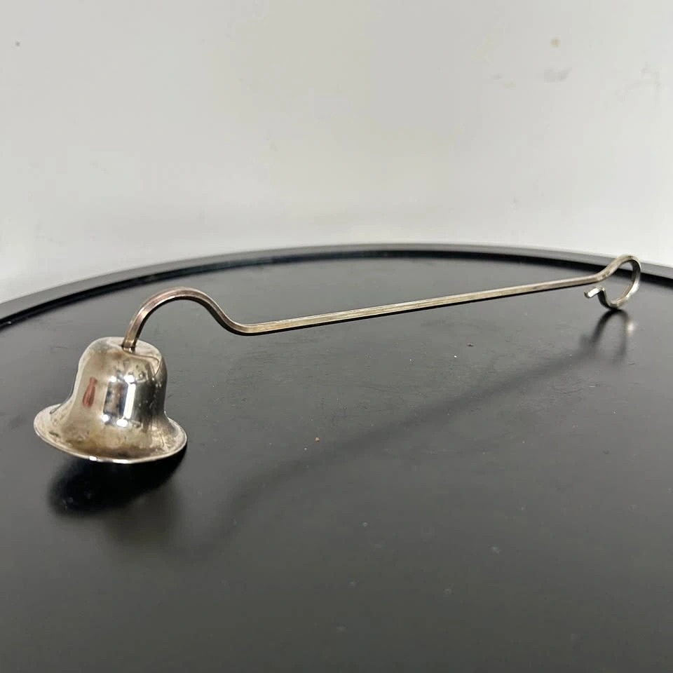 Elegant vintage silver-plated candle snuffer with a classic bell-shaped head and curved handle. Designed to safely extinguish candles without smoke or wax splatter, this timeless piece brings a touch of sophistication to any home or altar setup.