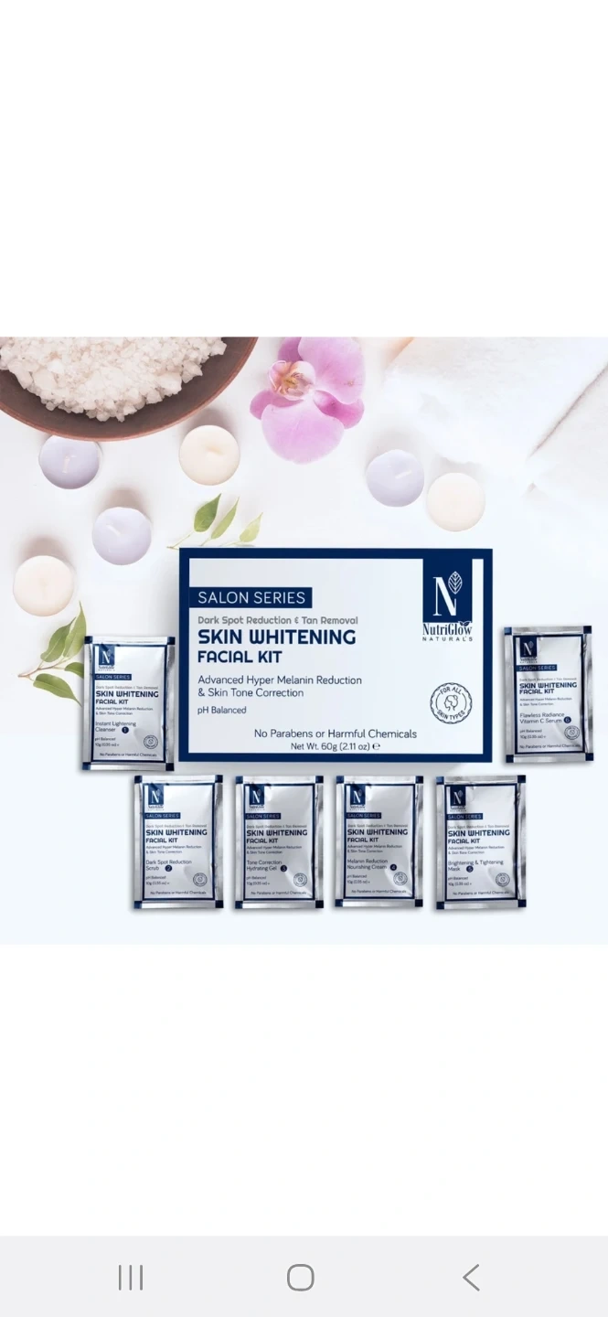 Selling a NutriGlow Naturals Skin Whitening Facial Kit! This Salon Series kit is designed for dark spot reduction and tan removal, aiming for advanced hyper melanin reduction and skin tone correction. It's pH balanced and free of parabens or harmful chemicals. Net weight is 60g (2.11 oz)
