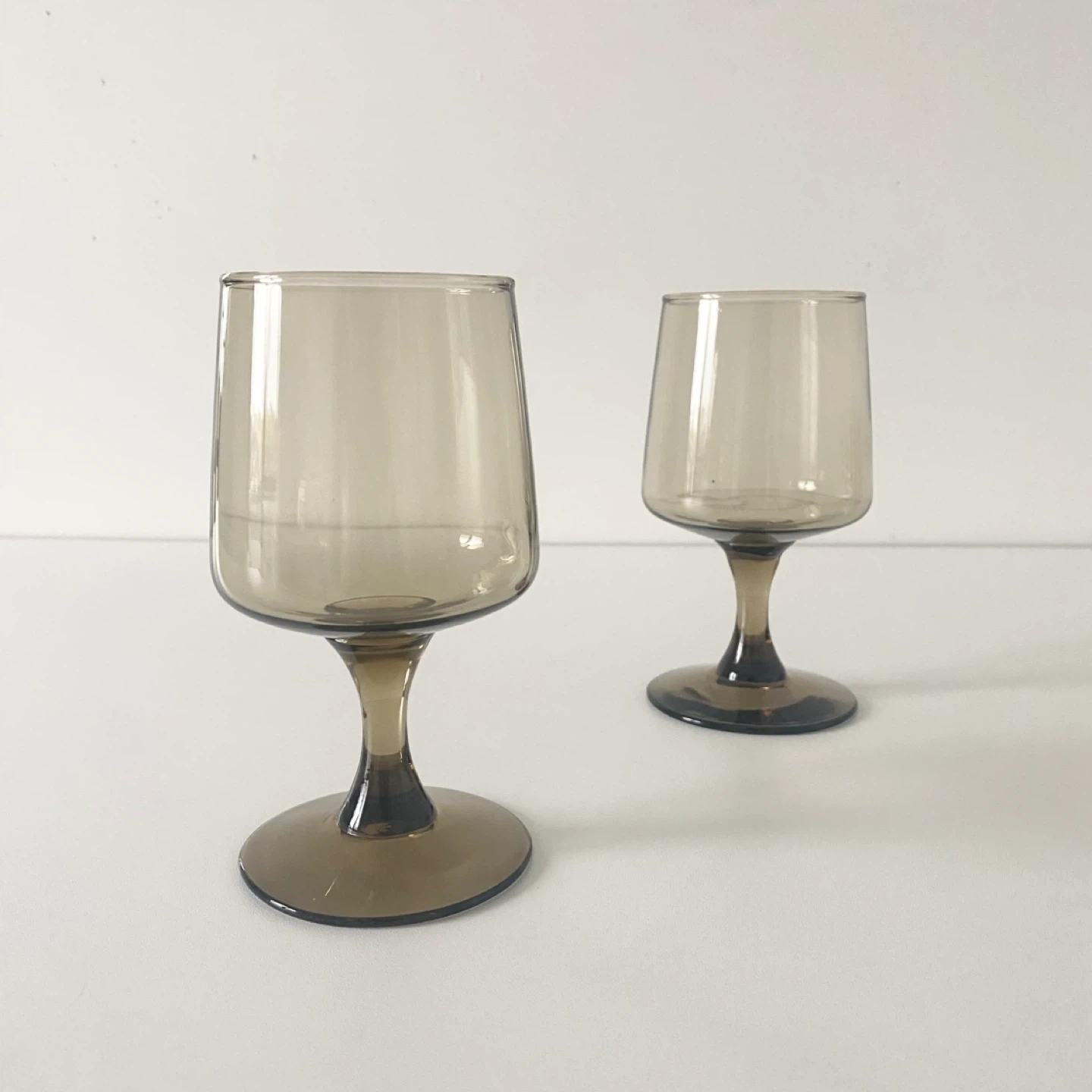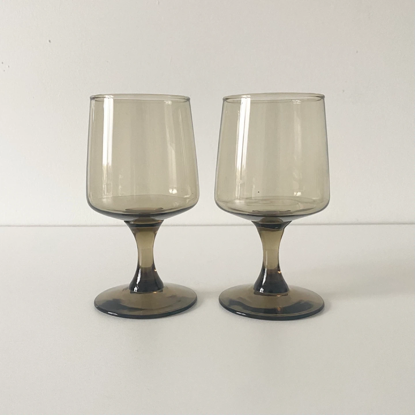 Mid century modern smoky brown wine glasses. There's no shipping or damage. In excellent condition.