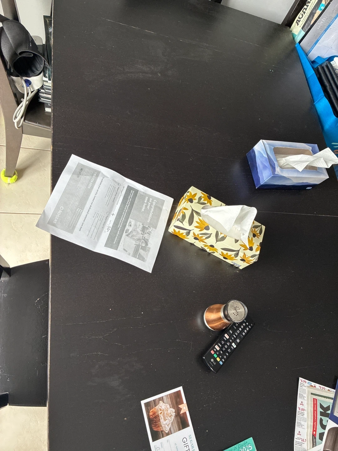 Selling a dining table with chairs. It's a dark colour, likely black. It looks to be in good condition and ready for a new home! Perfect for family dinners or gatherings with friends, has two inserts stored under table 16” wide and 6 chairs