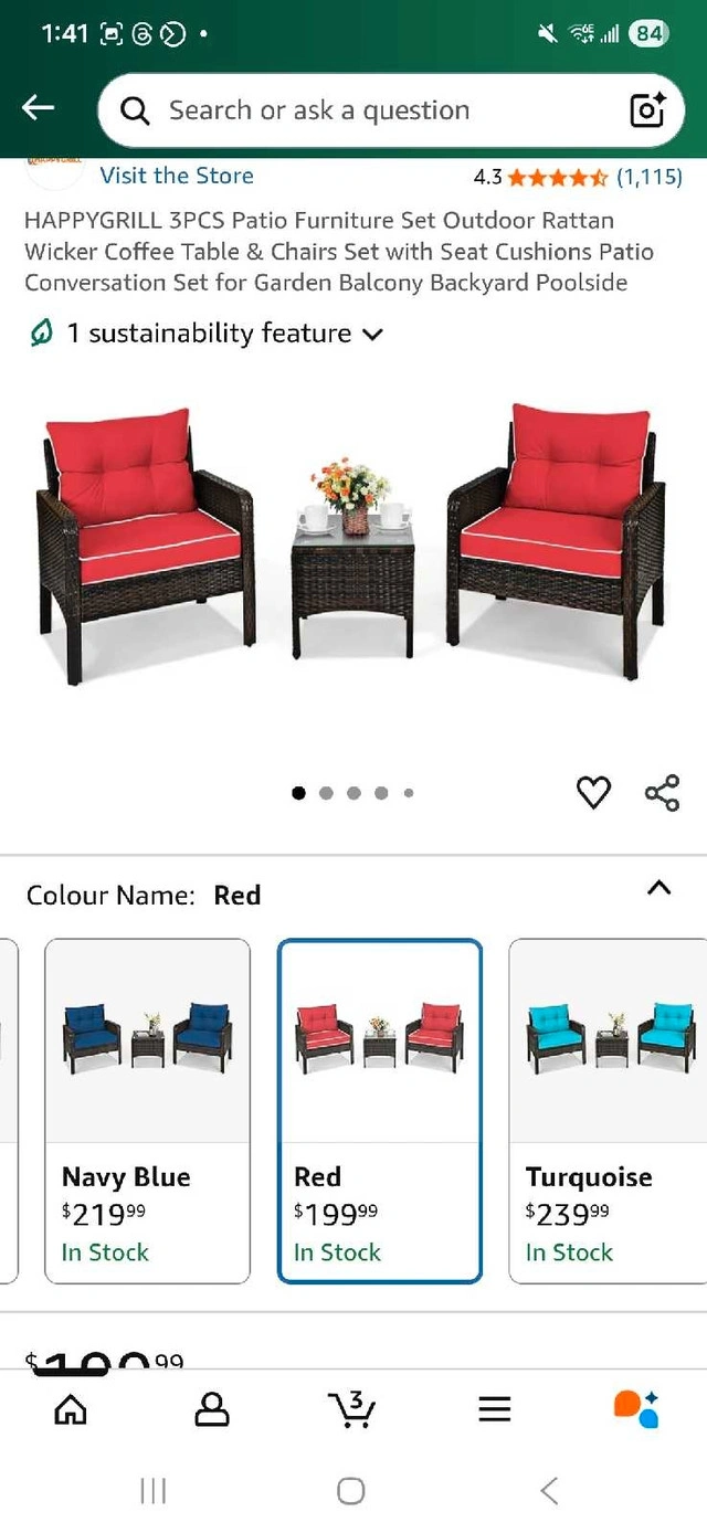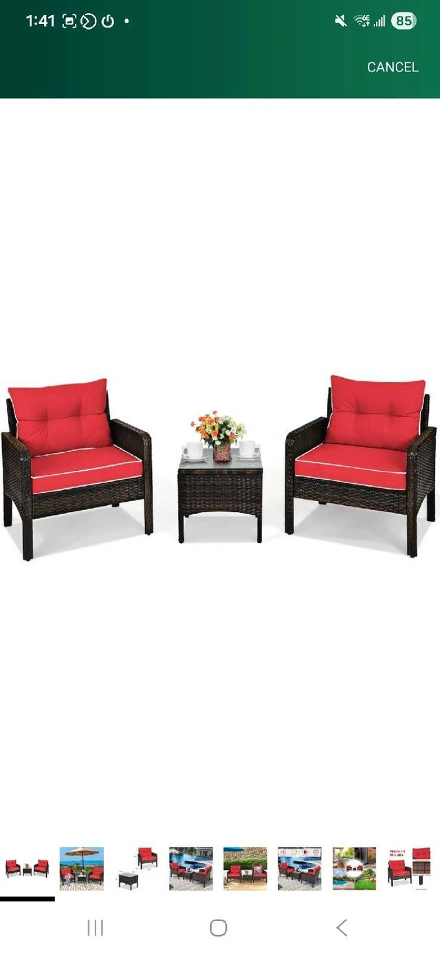 10This is a used HAPPYGRILL 3-piece patio set that's perfect for a condo balcony or small outdoor space, including two chairs and a matching table. The cushions are a vibrant red and the rattan is a dark brown, offering a stylish touch to any setting. Here are some details: * Includes: 2 chairs, 1 table * Material: Rattan wicker with red cushions * Condition: Used, but in good condition- cushion sun faded Looking to add a splash of colour to your outdoor space? This set is calling your name! Don't miss out on the chance to snag this cozy set for your patio or balcony! If you see this ad, it's still available!
