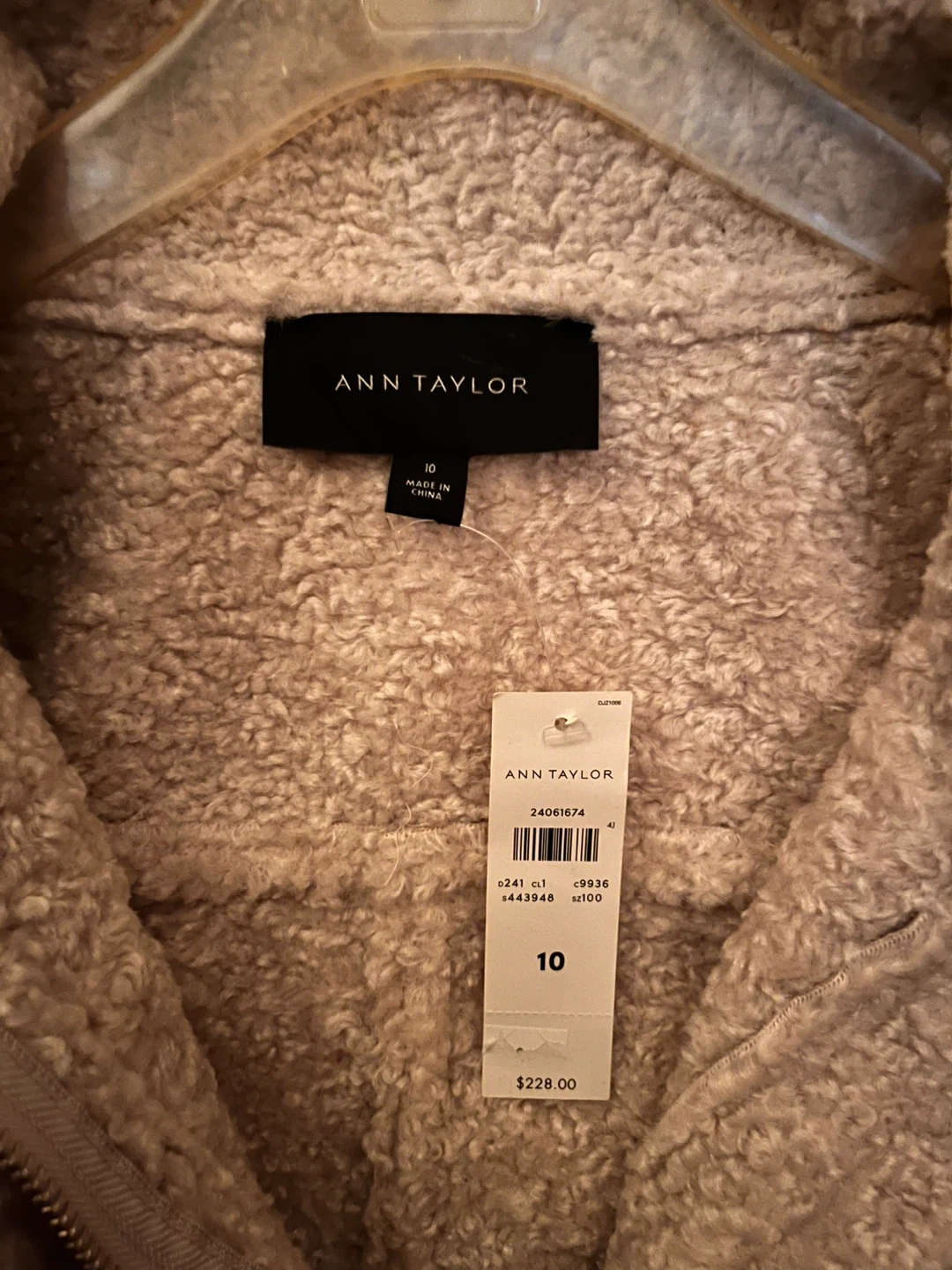 Selling a cozy Ann Taylor jacket in size 10! It's in great condition and features a soft, plush lining, perfect for staying warm. Originally bought for $228.00