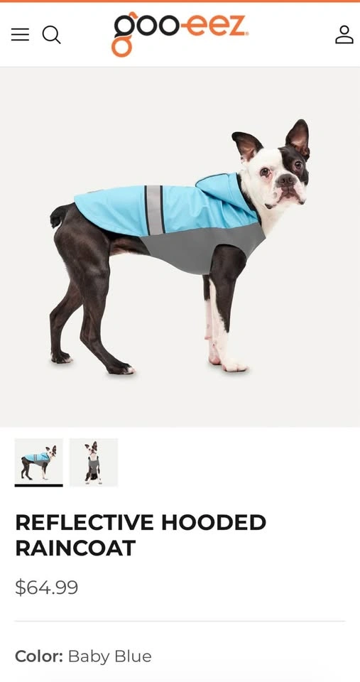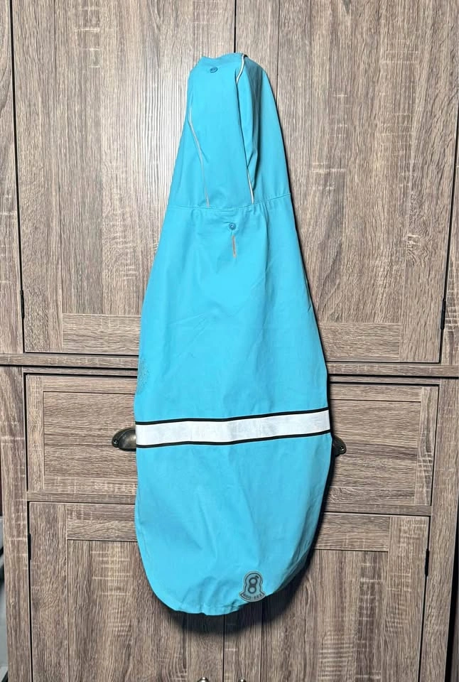 Goo-eez reflective dog raincoat. Colour baby blue. Only worn a couple of times before it was too small for our puppy images have sizing info from Goo-eez site. Pick up only.