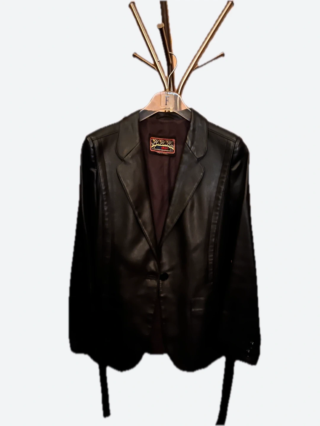 Here's a stylish black leather blazer from UKON! It's in great condition and ready to add a touch of sophistication to your wardrobe