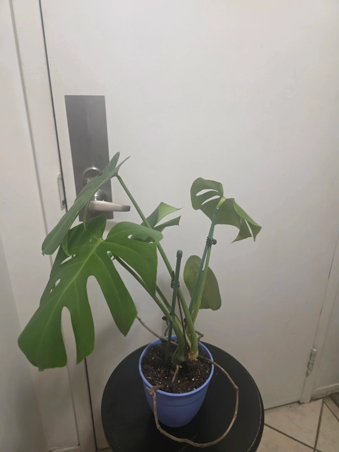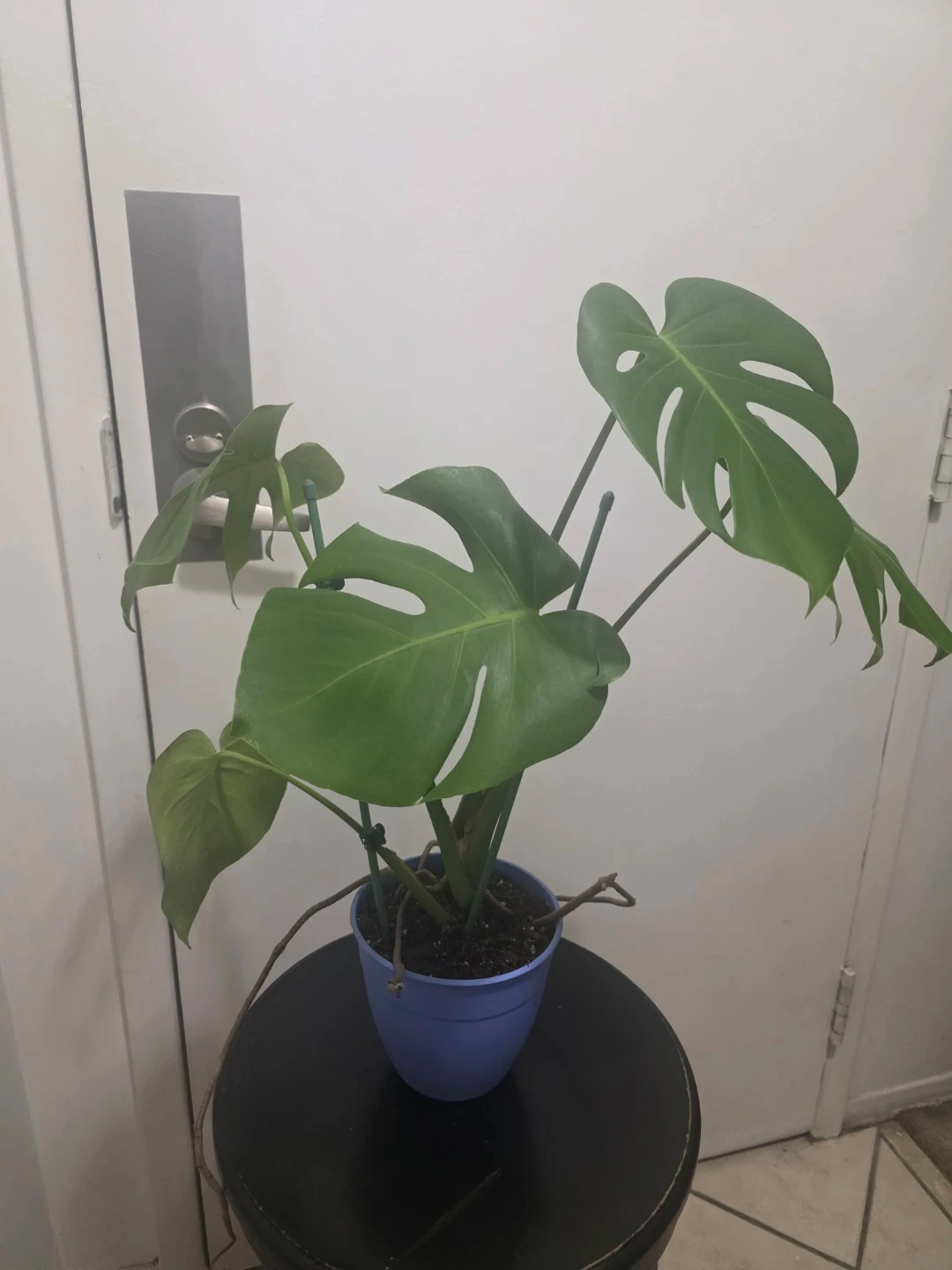 I'm selling a healthy monstera plant, potted in a cute blue pot! It's a great way to add some greenery to your space.