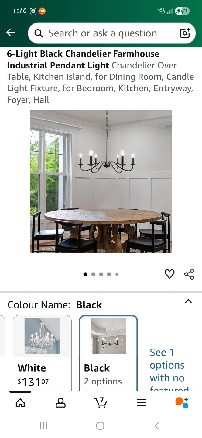 Selling a lovely black 6-light farmhouse chandelier! It adds a touch of industrial charm to any dining room, kitchen, or entryway. The chandelier is 24.5 inches wide and the height is adjustable from 14.6 to 36.6 inches