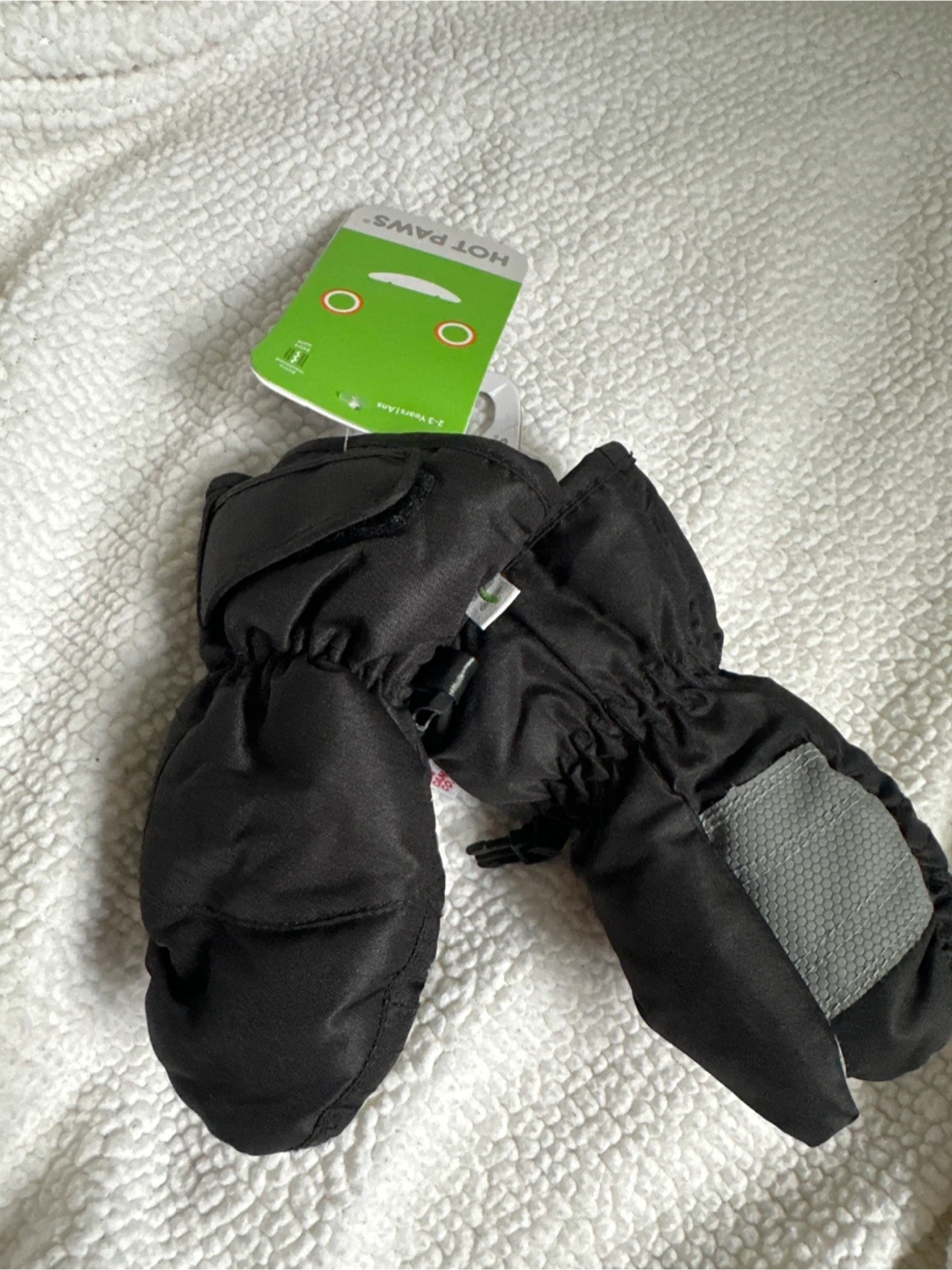 These Hot Paws mittens are brand new with tags! They are perfect for kids aged 2-3 years. They feature Therma-Last insulation for extra warmth without the weight, Fiberflo micro insulation, and Microvel brushed fibers for a soft and comfortable lining. Keep your little one's hands warm and cozy this winter!