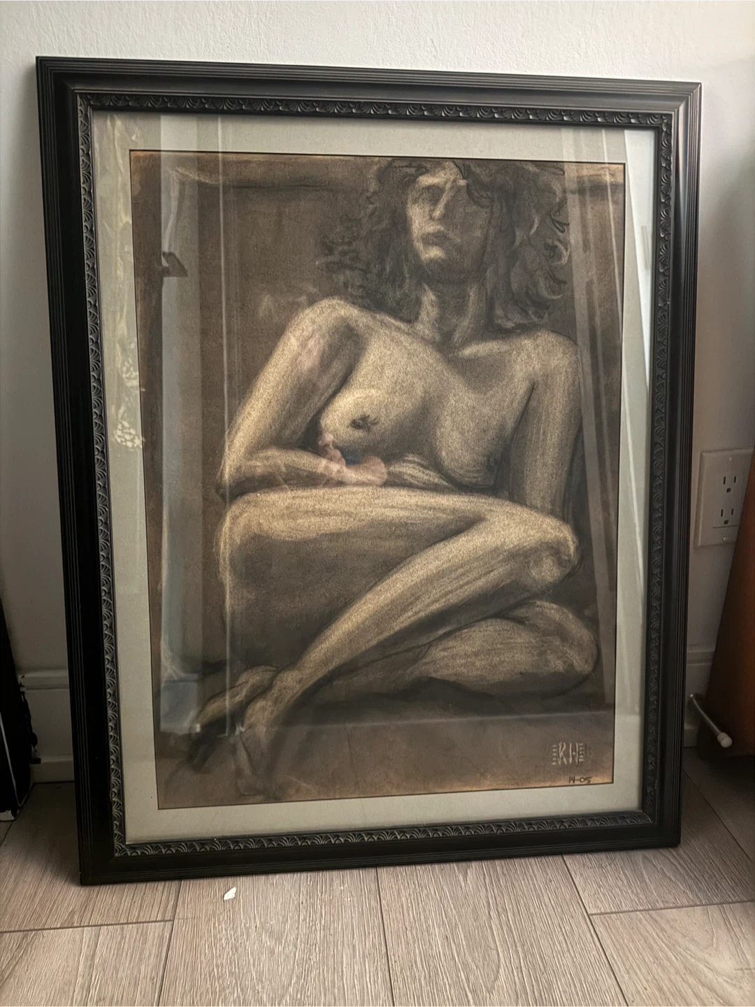 Here's a framed charcoal drawing up for grabs! It's a unique piece that would look great in any home. The frame is in good condition and ready to hang. Heck! Buy it for the frame!