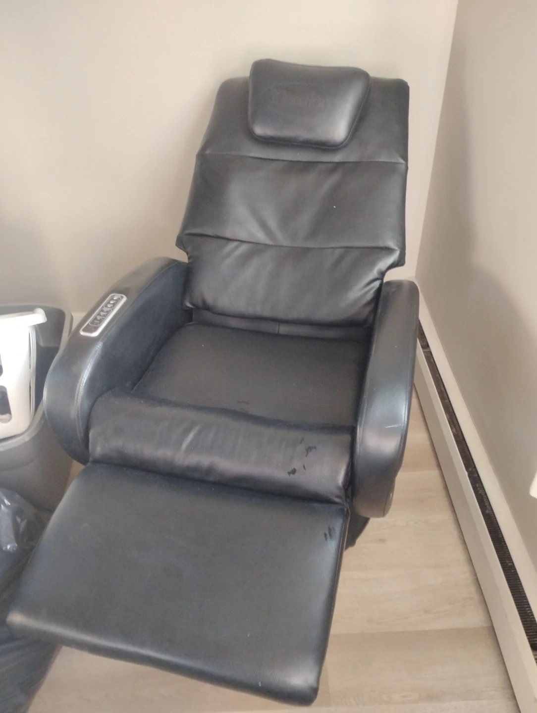 Barely used. Smaller size from a Motorhome. Selling an iComfort massage chair in black. It features various massage settings including heat, upper back, lower back, and vibration. A great addition to any home! A couple small white scuffs on the side from moving. No tears or scrapes.