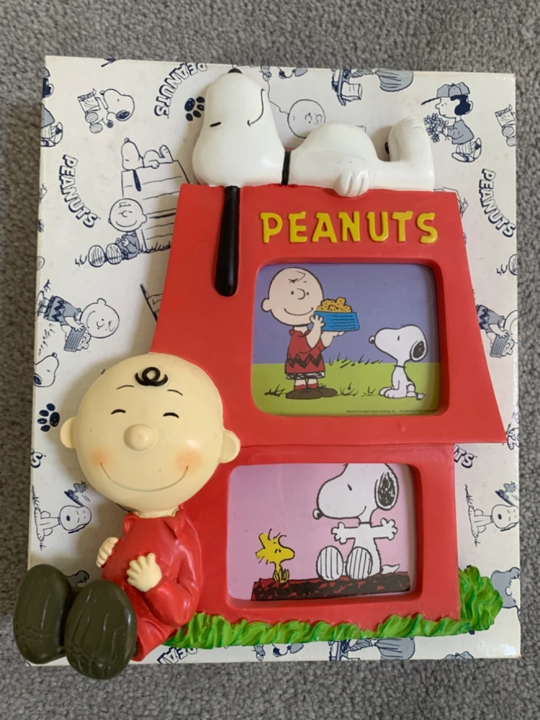 Super cute Peanuts photo frame featuring Charlie Brown and Snoopy! Perfect for adding a touch of nostalgia to any room