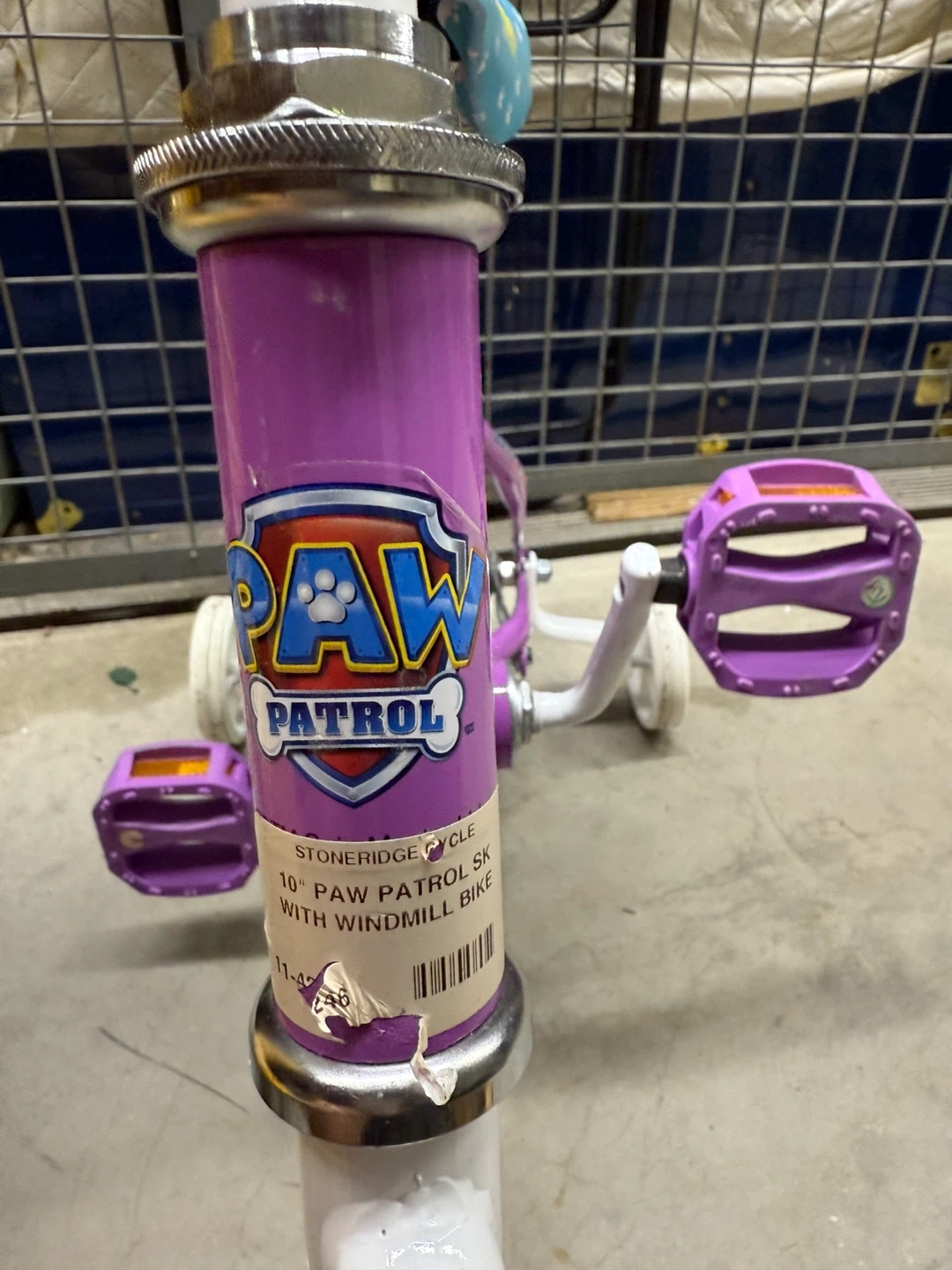 Selling a cute Paw Patrol 10" bike with a windmill! It's a great starter bike for little ones who love Paw Patrol. Perfect for learning to ride with its sturdy design and fun Paw Patrol theme