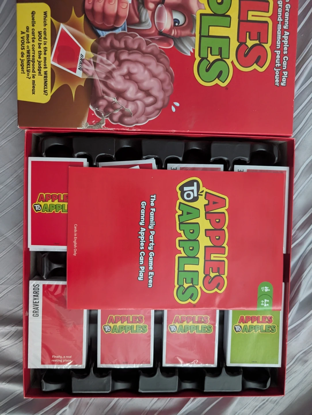116Selling a complete Apples to Apples party game! Never played, but 2 decks opened. Pick up only.