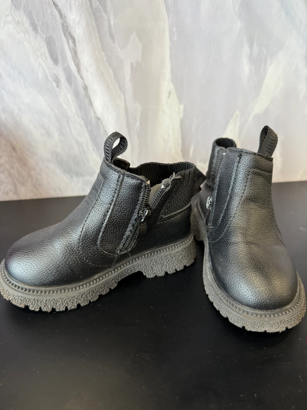 These cute black ankle boots are perfect for your little one! They feature a zipper on the side for easy on and off. The size EU 24, and they're in great condition for all their adventures
