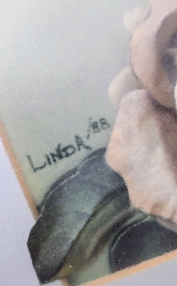 High quality glass in frame is excellent condition, no scratches, it is a satin finish so it diffuses the vibrancy in the artwork somewhat (can change glass if desired)