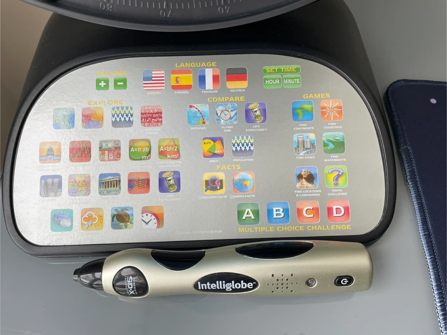 103Explore the world with this Intelliglobe! It's an interactive globe that makes learning about geography fun and engaging. Comes with the World Discovery Book and the Intellipen. Cash and carry. Pick up in Richmond Hill or near college subway station in Toronto. Thank you