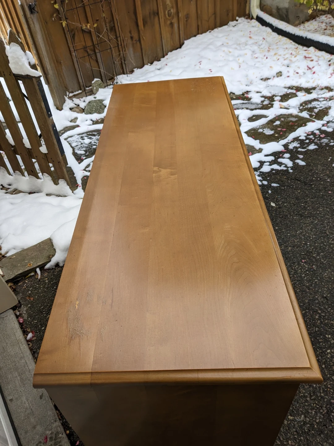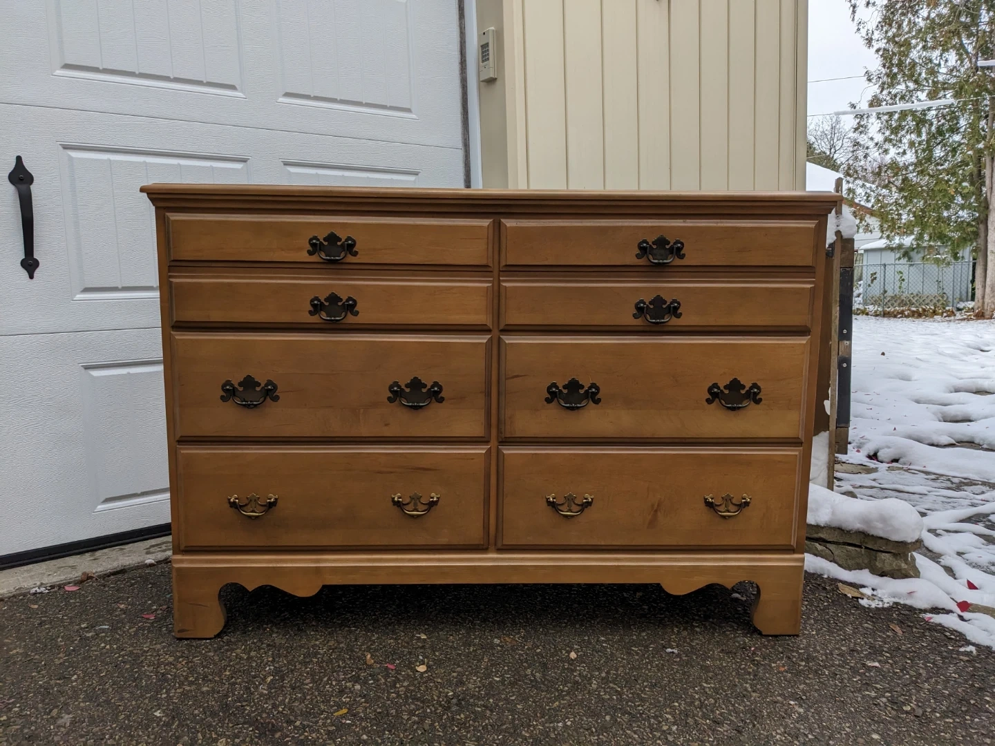 This is a solid and sturdy, well made maple dresser that is built to last.