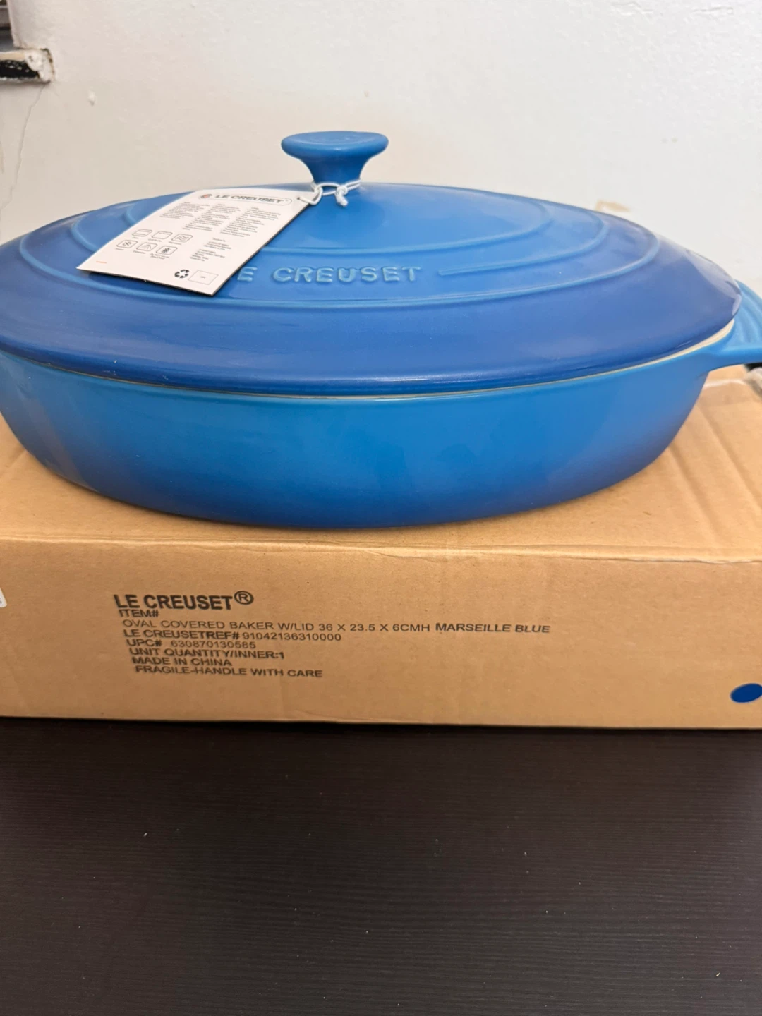 Selling for $200each or $350 for both. Selling a Le Creuset oval covered baker in the beautiful Marseille Blue colour! It's sized at 36 x 23.5 x 6 cm. The baker comes with its lid and original box. It's brand new and ready for your next culinary creation! Can also be gifted.