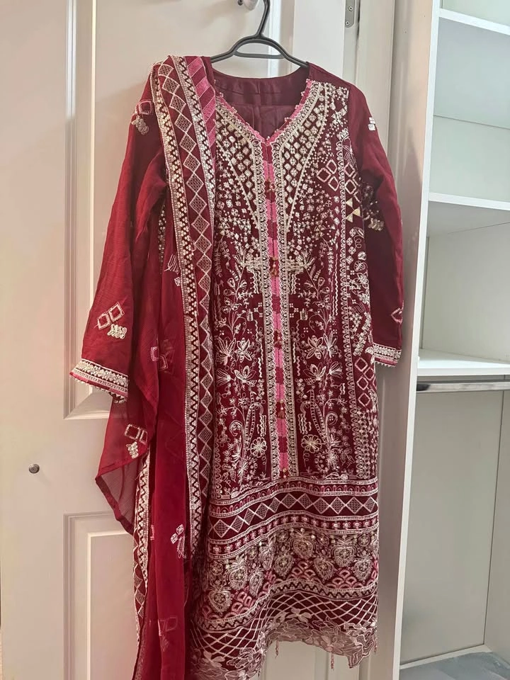 Comes with matching pants and dupatta — worn once for a wedding and still looks new!
