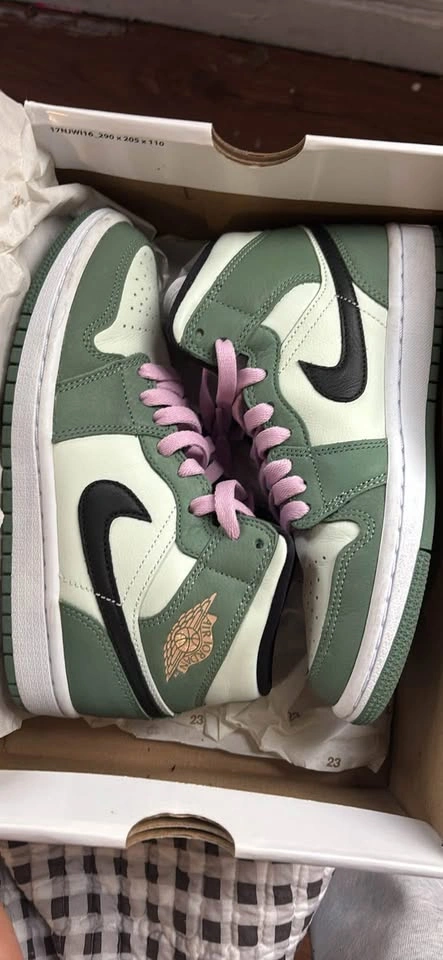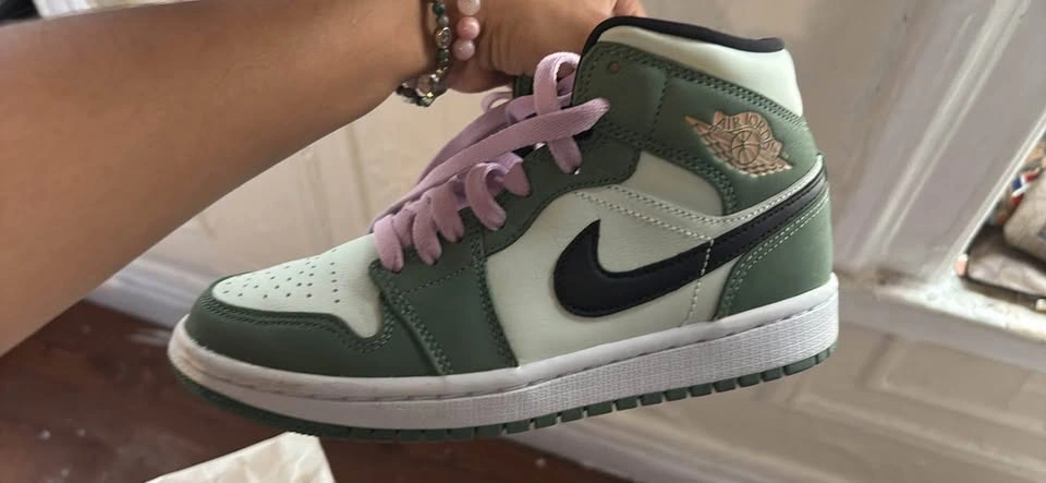 Buy & SellAir Jordan 1 sneakers Mid Dutch GreenAir Jordan 1 sneakers Mid Dutch Green$300Great condition Air Jordan 1 sneakers. Green and white with pink laces. Size 6. Comes with original box.WHERE TO MEETCheck LocationView MapSELLERverifiedRosarioFordham1235 reviews0 chats·0 favorites·6 views