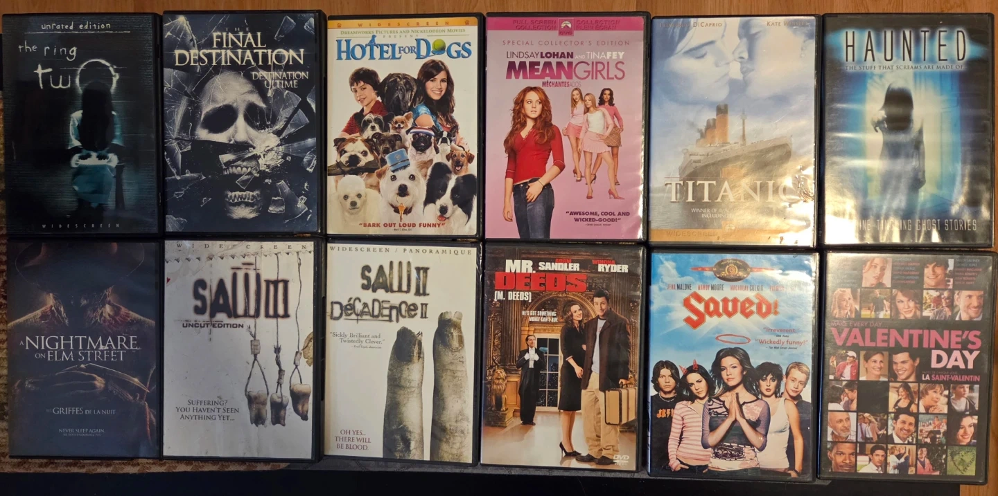 Selling a collection of DVDs. Perfect for movie nights or adding to your collection. Titles include a variety of genres, from comedies to thrillers.