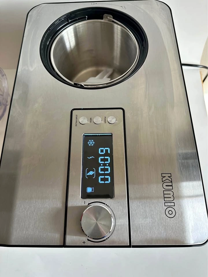 KUMIO 2.2-Quart Ice Cream Maker with Compressor, No Pre-Freezing, Stainless Steel Ice Cream Maker Machine with LCD Display, Timer, 2 in 1 Ice Cream Yogurt Machine, Electric Fruit Yogurt Machine, 180W