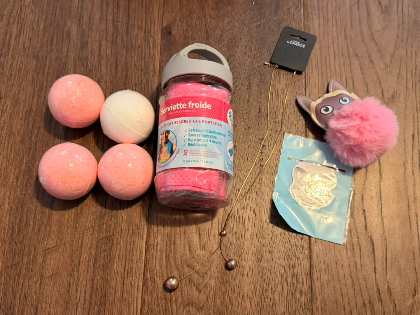 120GIFTABLE Woman’s Christmas Gift Lot ($5 for everything) A perfect gift lot that includes: - Icy Cool Towel by Upper Canada in pink - 4 pink and white bath bombs - brand new fashionable necklace - cute cat key chain / purse decor (lightly loved) - magnetic bookmark All brand new unless otherwise stated. Package this up in a pretty gift bag and you have everything you need for your next Christmas gift. $5 for the entire lot Clean, smoke free home Pick up in North Ajax