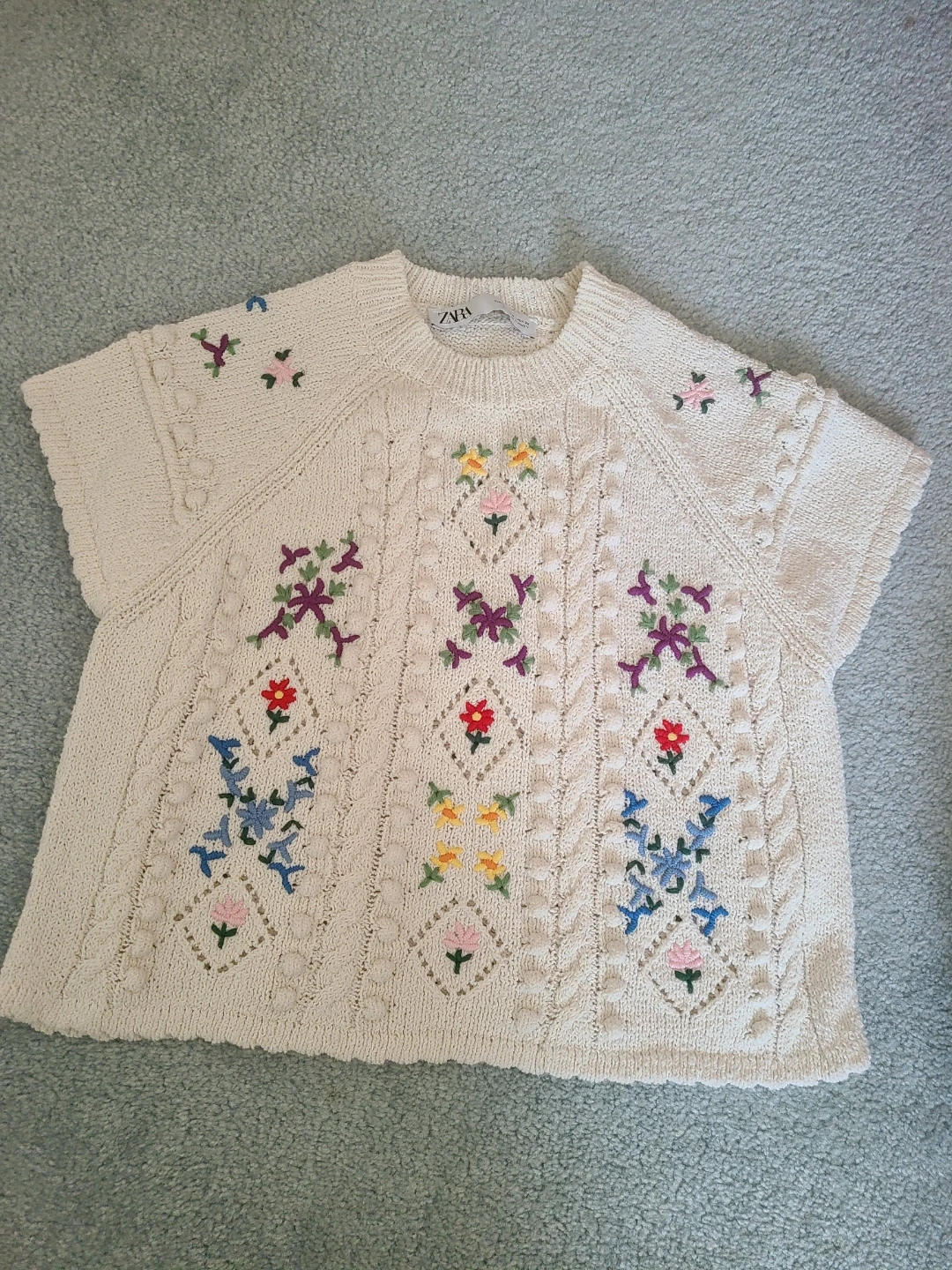 Selling a cute Zara knit top! It's a size small and features beautiful embroidery details. Perfect for adding a touch of charm to any outfit!
