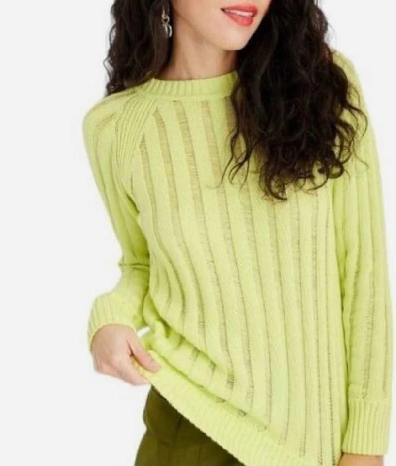 Lime Green Textured Loose Knit Cotton Womens Sweater