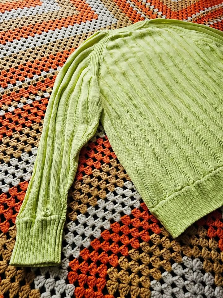 Lime Green Textured Loose Knit Cotton Womens Sweater