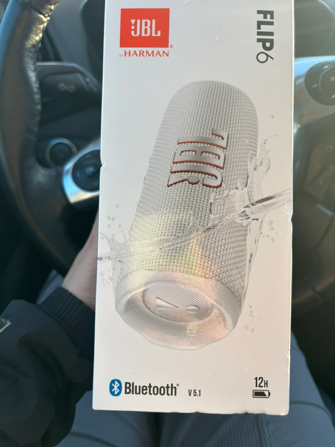 Selling a brand new JBL Flip 6 in white! This portable Bluetooth speaker is perfect for any adventure. It's IP67 waterproof and dustproof, so you don't have to worry about splashes or sand. Plus, with JBL PartyBoost, you can wirelessly link multiple speakers together for an even bigger sound