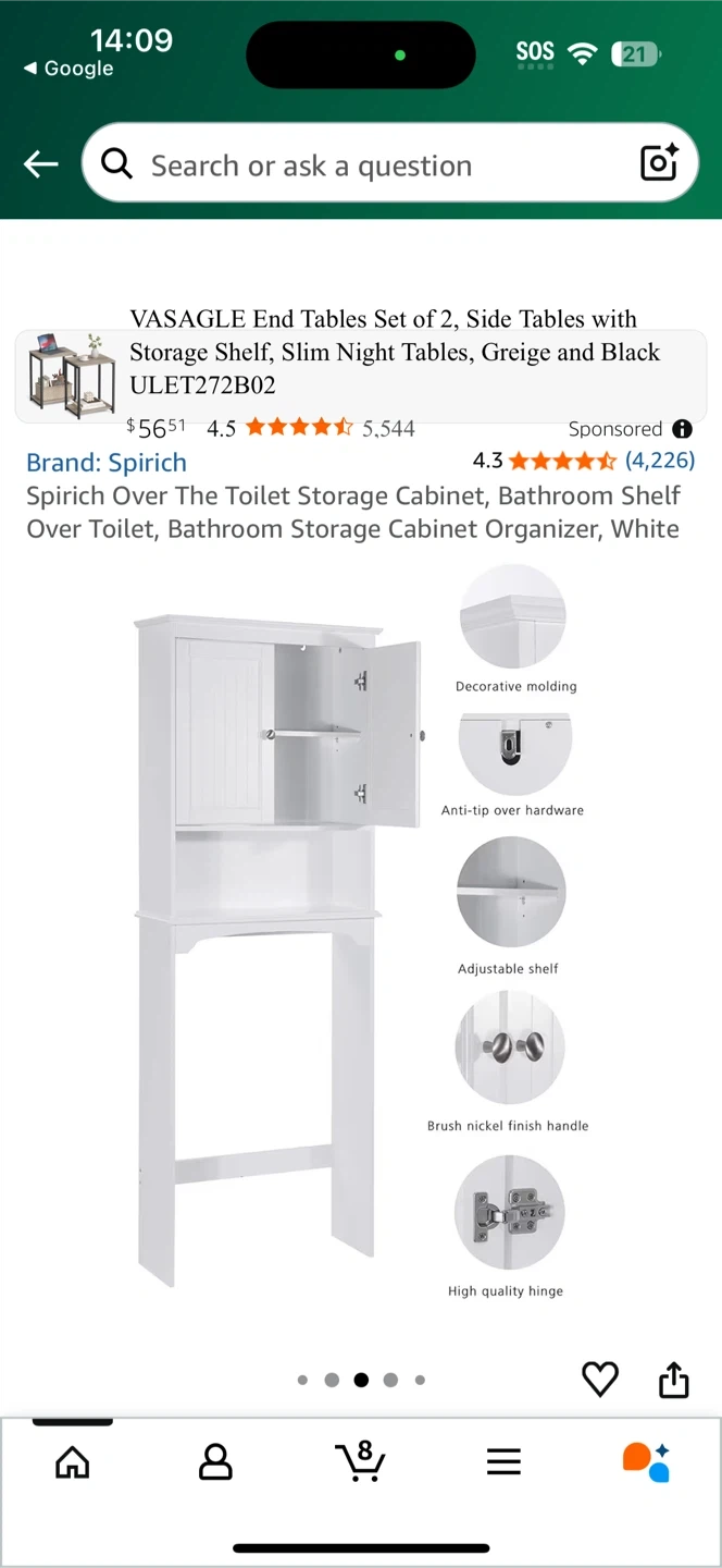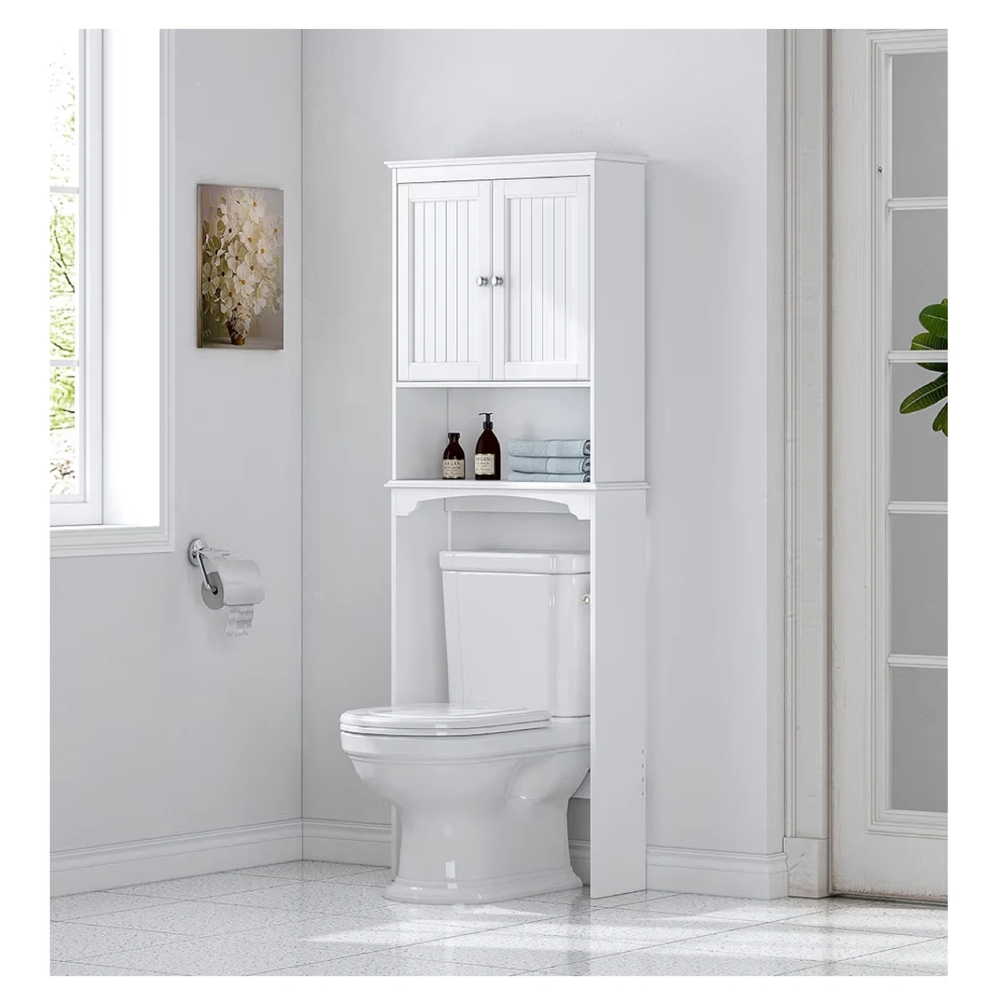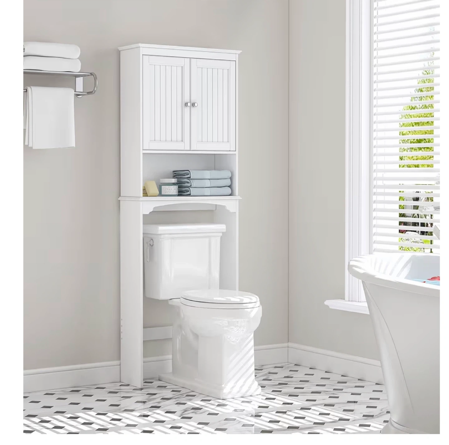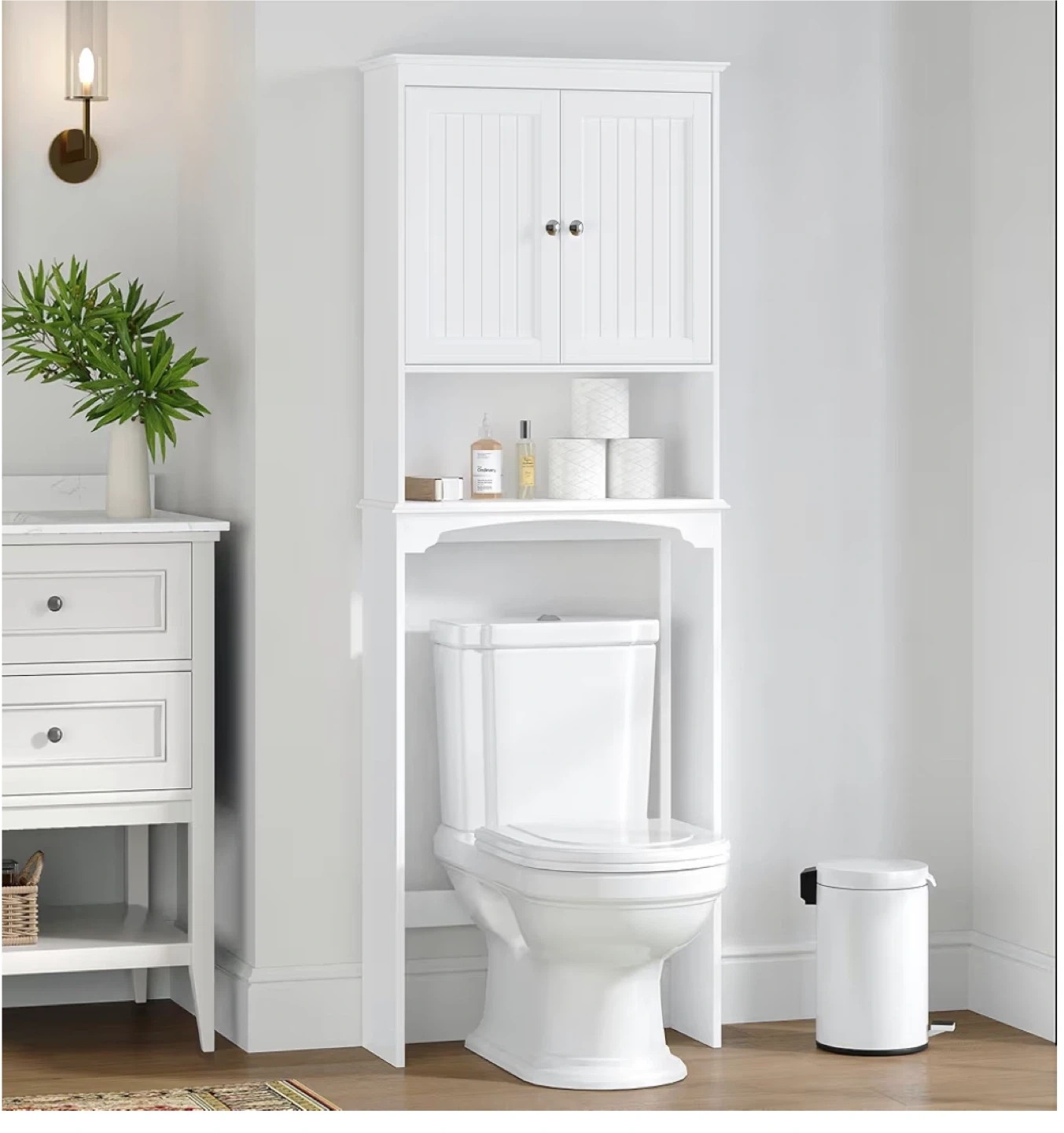 73Selling a super handy over-the-toilet bathroom cabinet! It's in new and ready to add some extra storage to your bathroom. It's a great way to keep things organized and tidy! Perfect for small spaces.