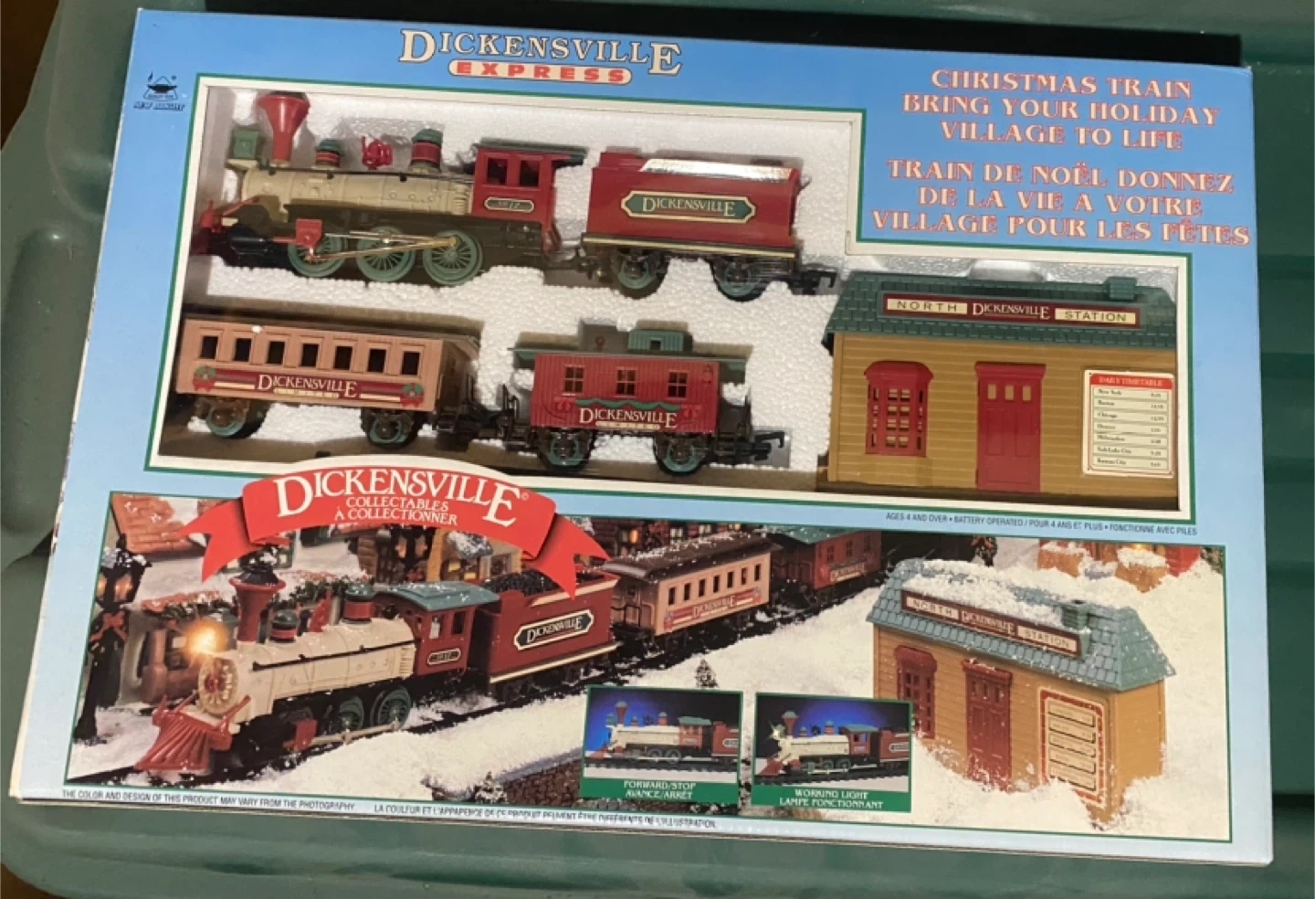 Get ready to bring your holiday village to life with this Dickensville Express Christmas Train set! The box includes the train, cars, and North Dickensville Station. All you need are 4 AA batteries to get it running!
