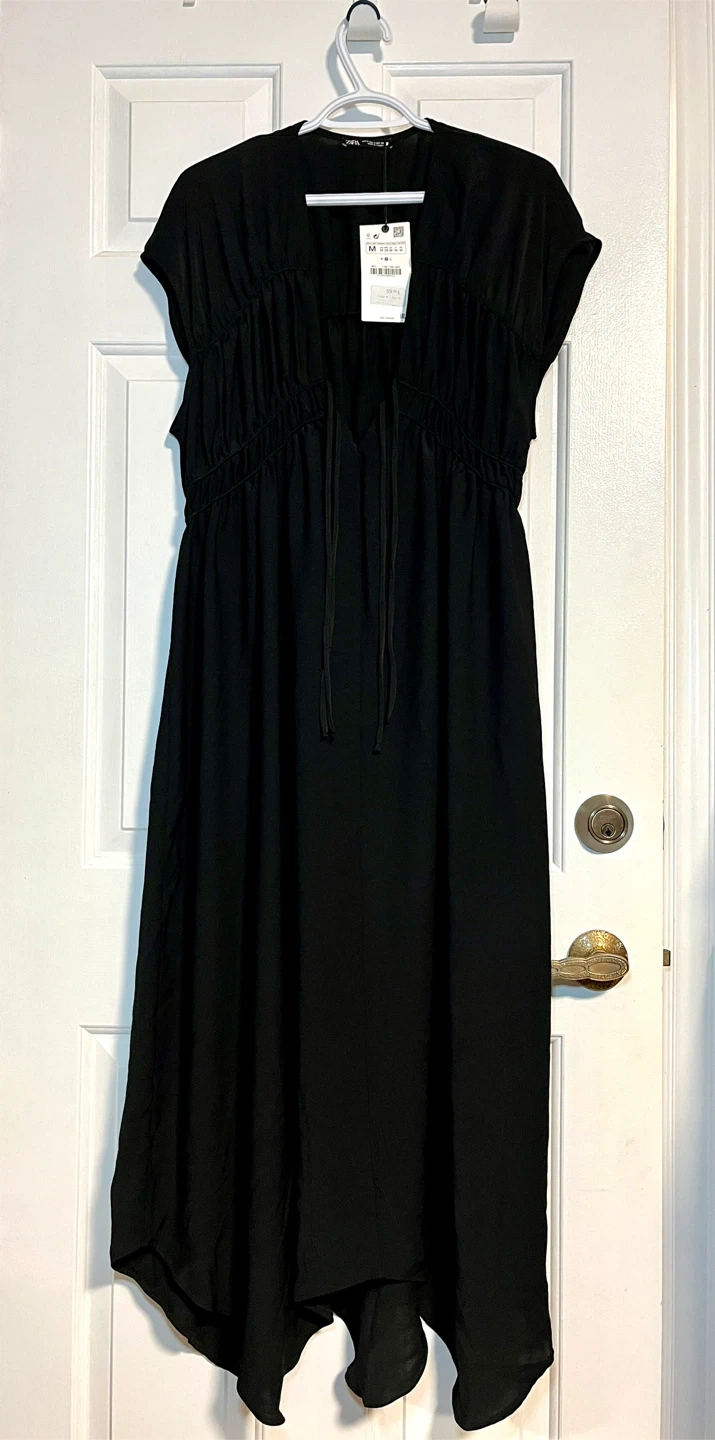 I'm selling a brand new Zara dress, still with the tags on! It's a size M and the colour is black. The tag shows it was originally $59.90.